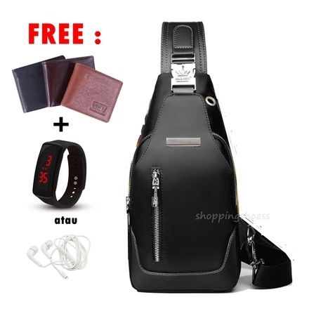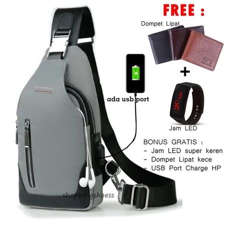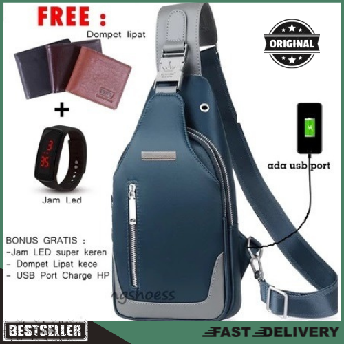 Tas Selempang Pria Keren 4in1 FREE DOMPET JAM USB Original Slingbag Murah Keren Anti Air Premium Eiger Simple Import