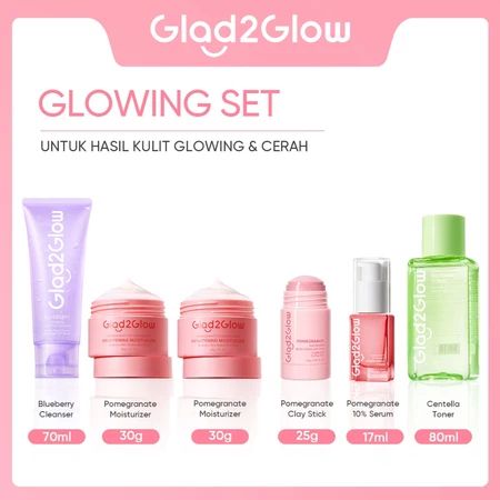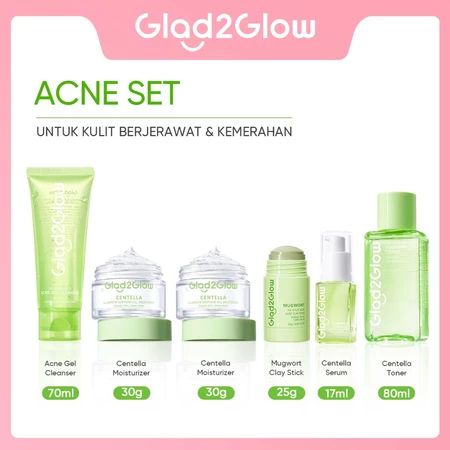 Paket Skincare SPECIAL BUNDLE 6in1 Glad2Glow 6pcs Paket Skincare Moisturizer Serum Clay Mask Face Wash Toner-ACNE KIT GL