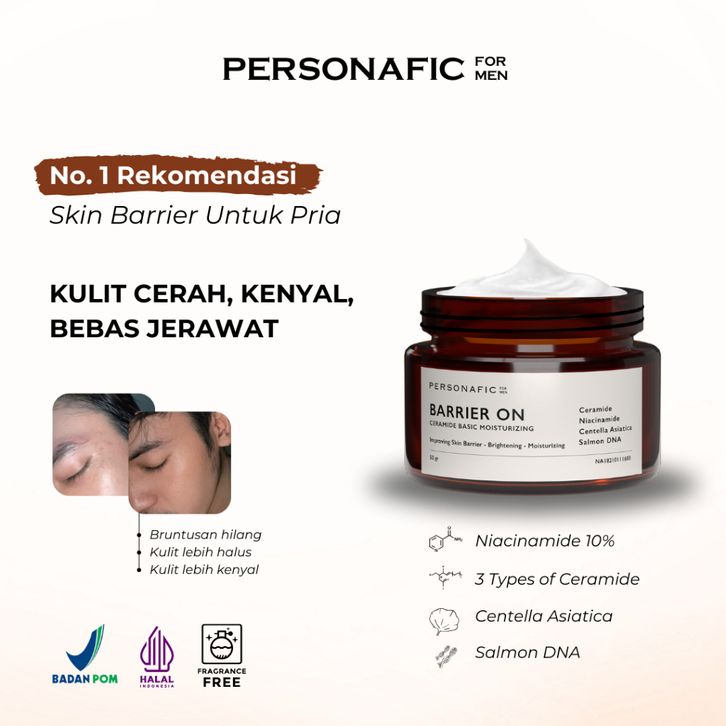 gratis ongkir PERSONAFIC Barrier On Ceramide Basic Moisturizer 50 gr - Krim Wajah Pria Untuk Mencerahkan