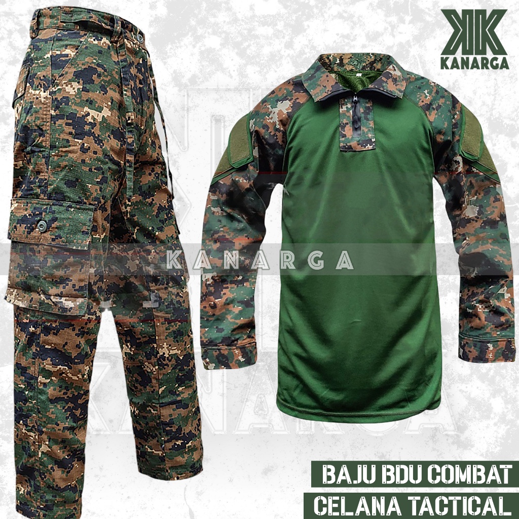 SATU SET SETELAN BAJU BDU COMBAT TACTICAL CELANA PDL PANJANG CARGO LORENG US MARPAT ARMY
