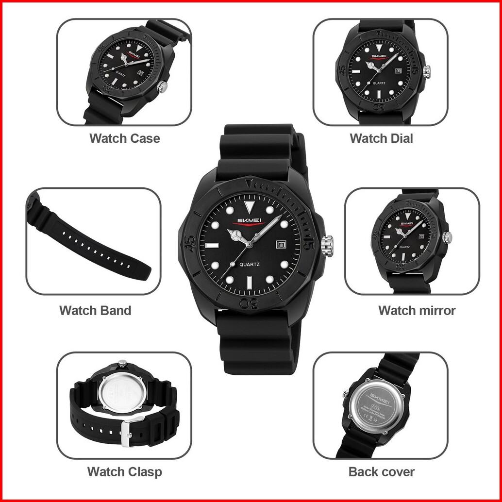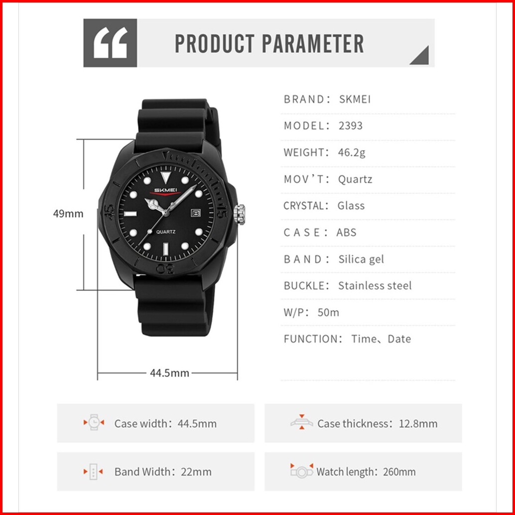 Jam Tangan Pria Analog Date Skmei 2393 Silica Strap Tahan Air 50 Meter Original