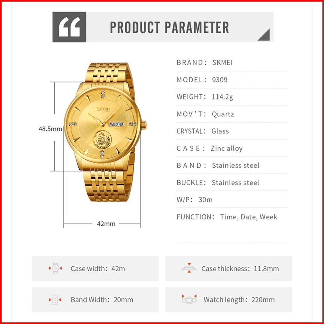 Jam Tangan Pria Skmei 9309 Analog Date Stainless Steel