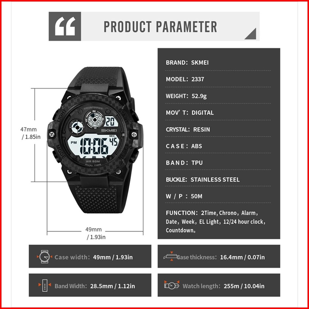 Jam Tangan Digital Pria Skmei 2337 Rubber Water Resist Original
