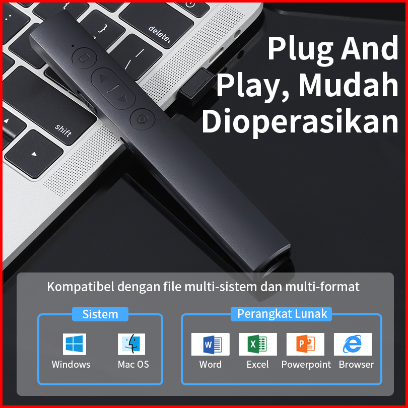 Basike Pointer Laser Presentasi Wireless Finger Presenter 2.4ghz Usb Rechargeable 50m