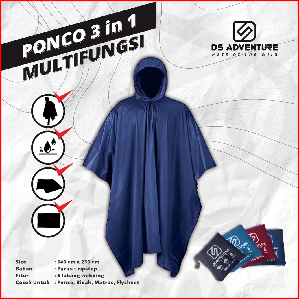Jas Hujan Ponco 3in1 Ds Adventure Multifungsi Waterproof