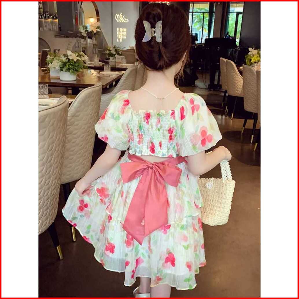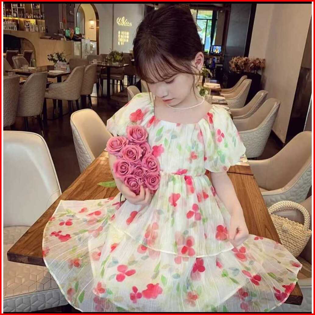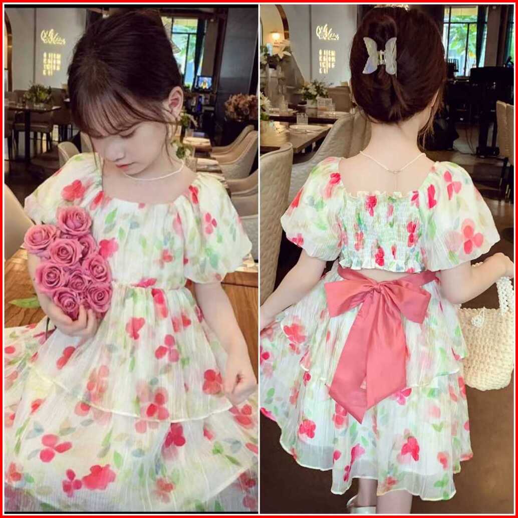 Meandboss Dr83 Dress Anak Perempuan Gaun Pesta Sifon Floral Bunga Ruffle Alure
