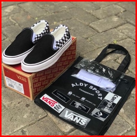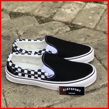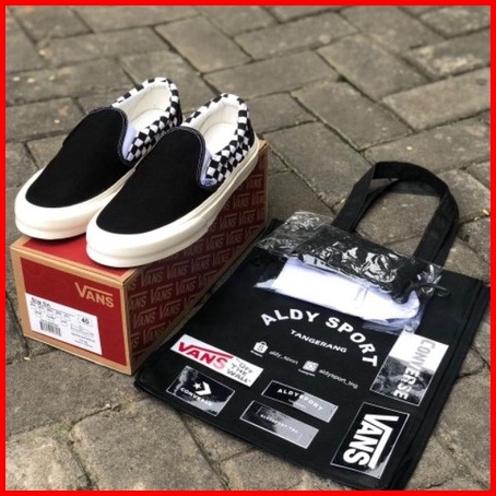 Sepatu Slipon Cheker Og Black White Premium China. Sneakers Pria Sepatu Slipon Pria Import.