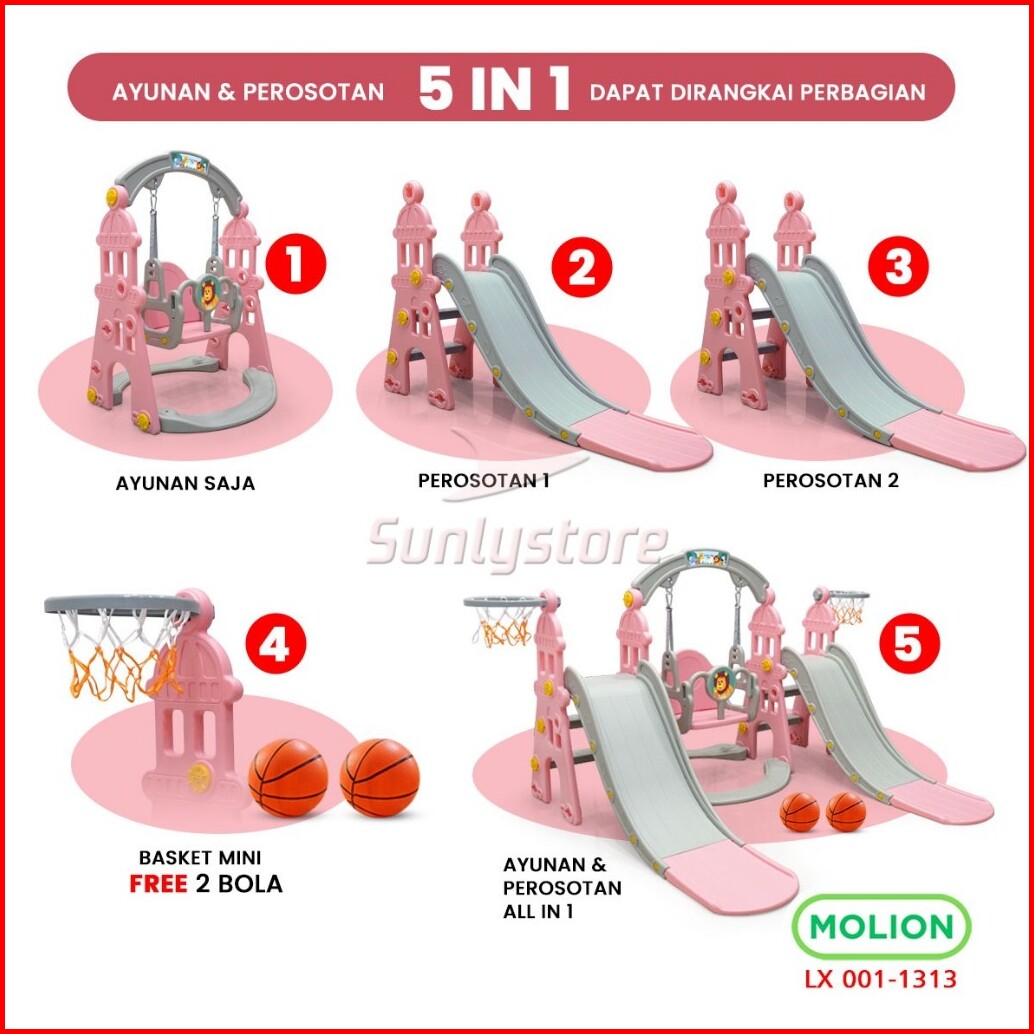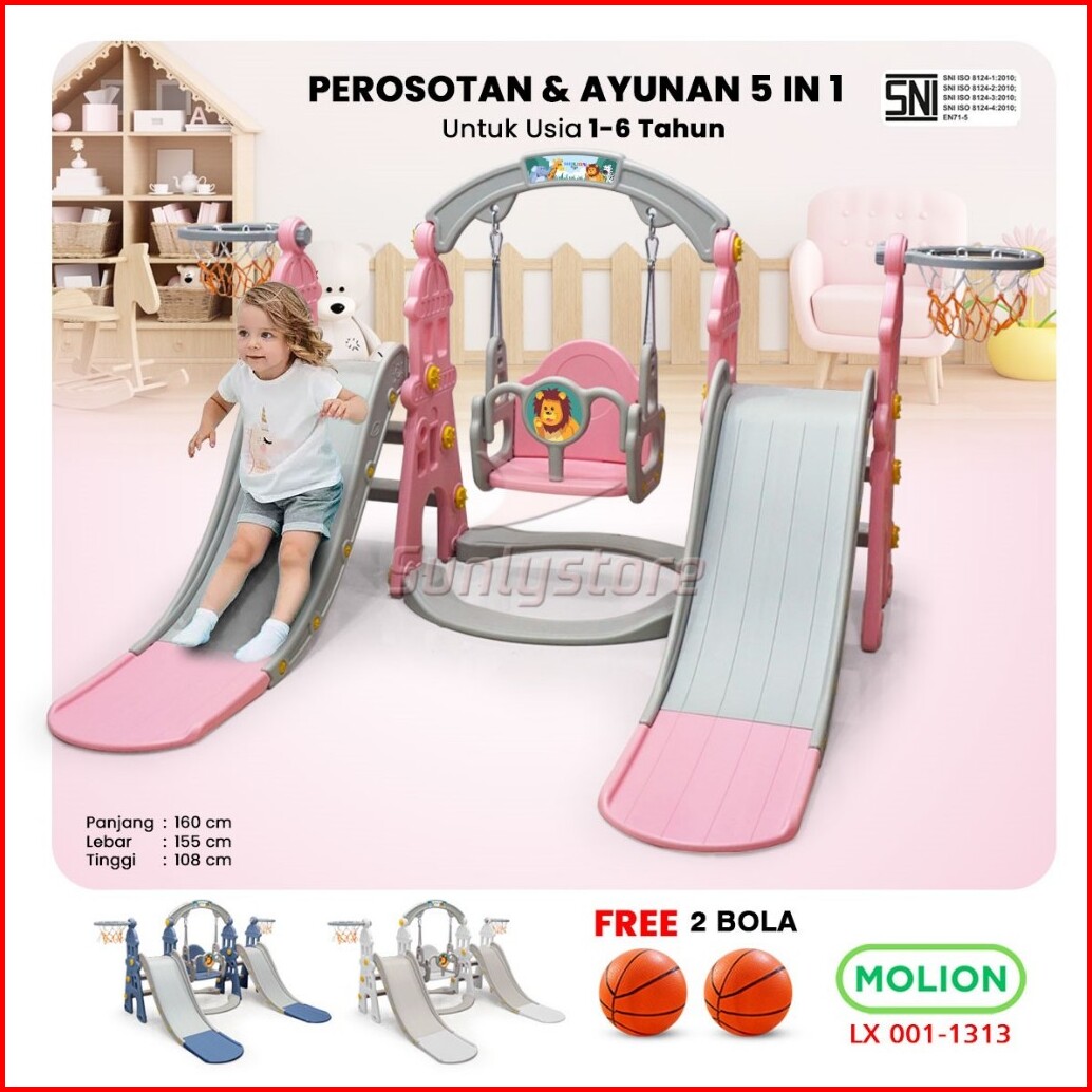 Molion Mainan Perosotan 5in1 Seluncuran Double Slide Swing Playground Anak Lx 001-m1313