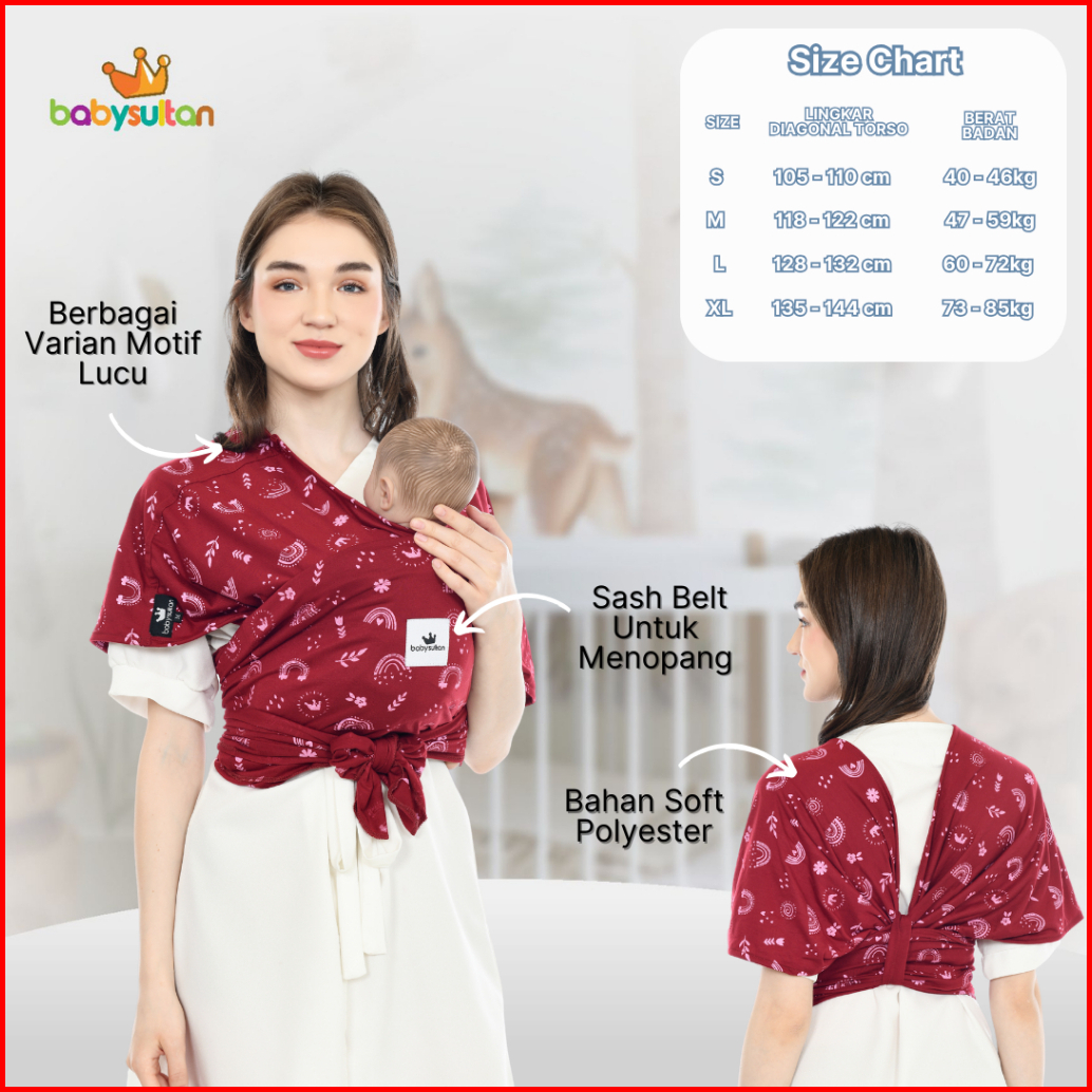 Gendongan Bayi Depan M Shape Motif 3in1 Baby Wrap Premium Dengan Sash Belt Babysultan