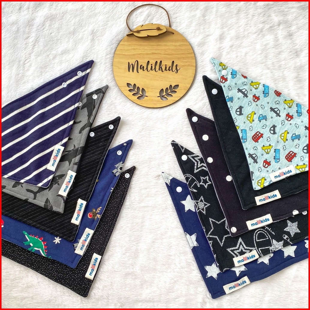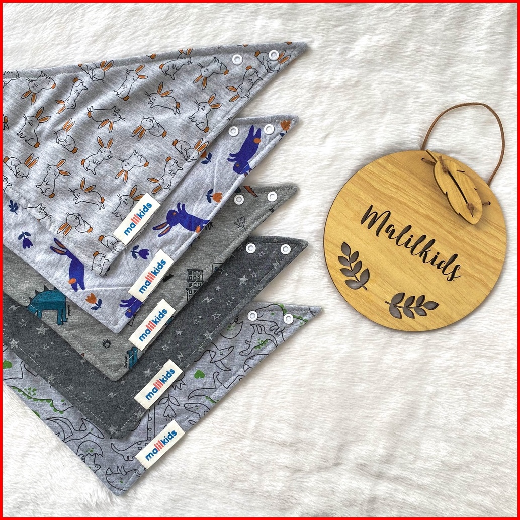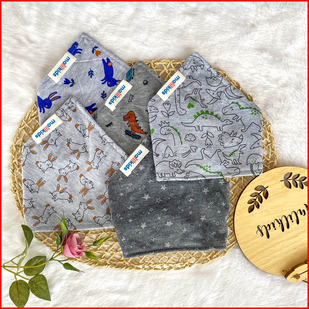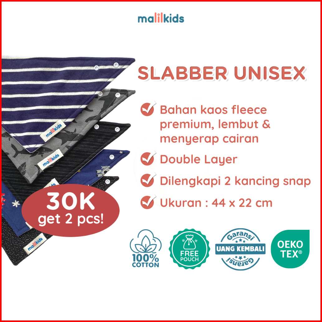 30k Get 2 Pcs Malilkids Celemek Baby Bib Slabber Segitiga Double Layer Motif Unisex
