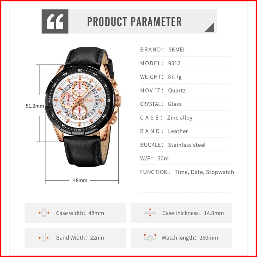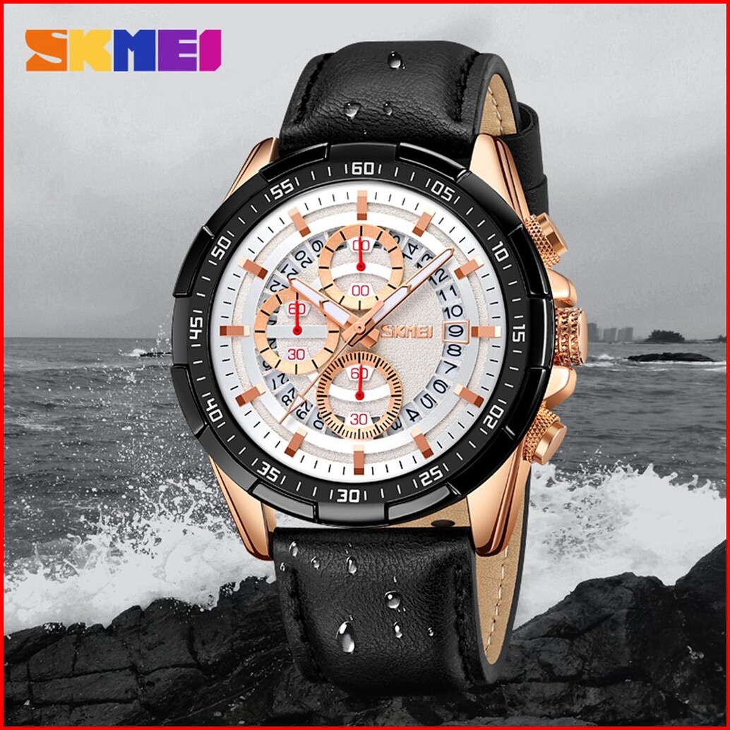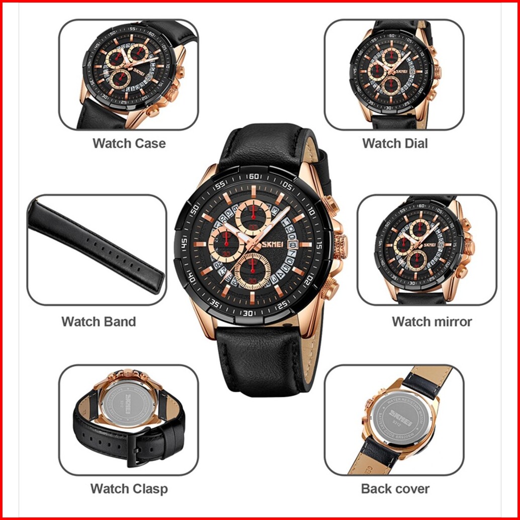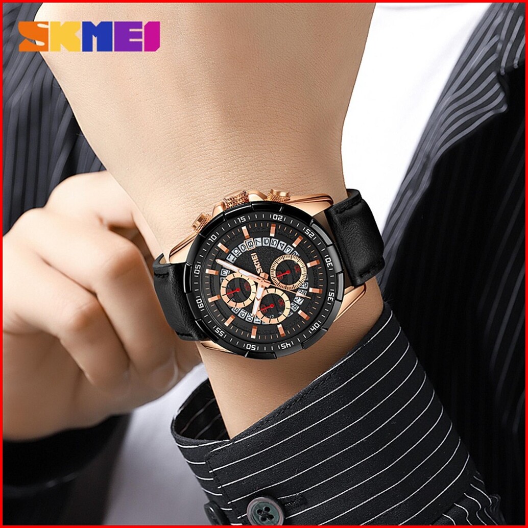 Jam Tangan Pria Skmei 9312 Analog Date Chronograph Leather