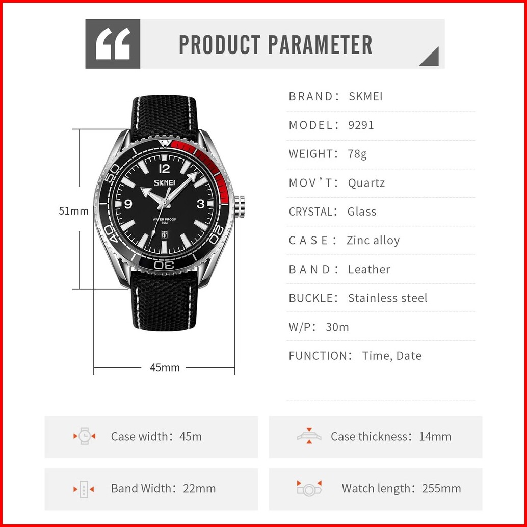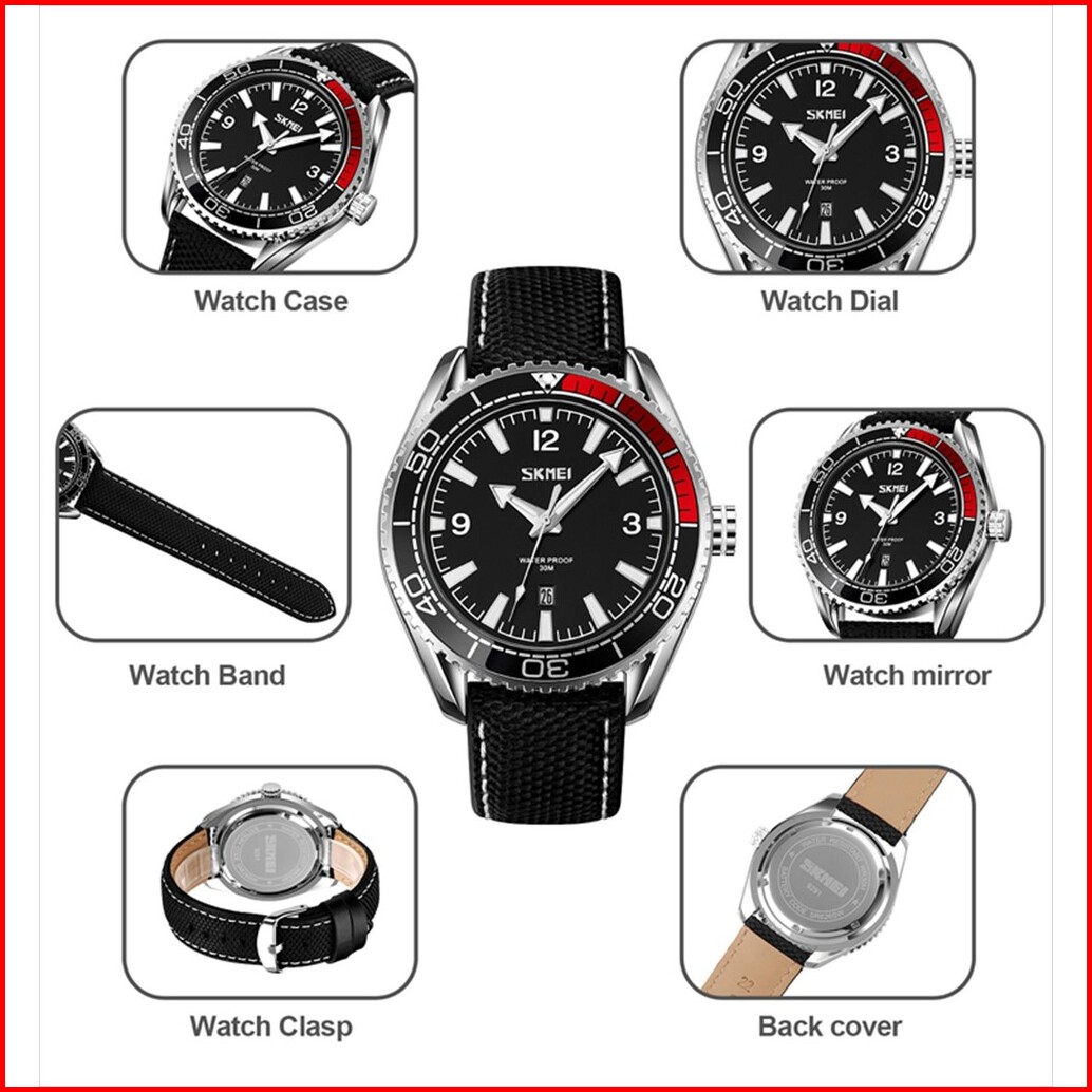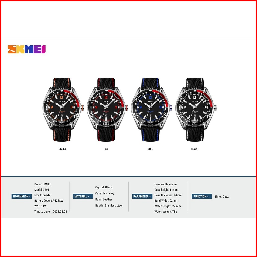 Jam Tangan Pria Analog Date Skmei 9291 Leather Strap Tahan Air Original