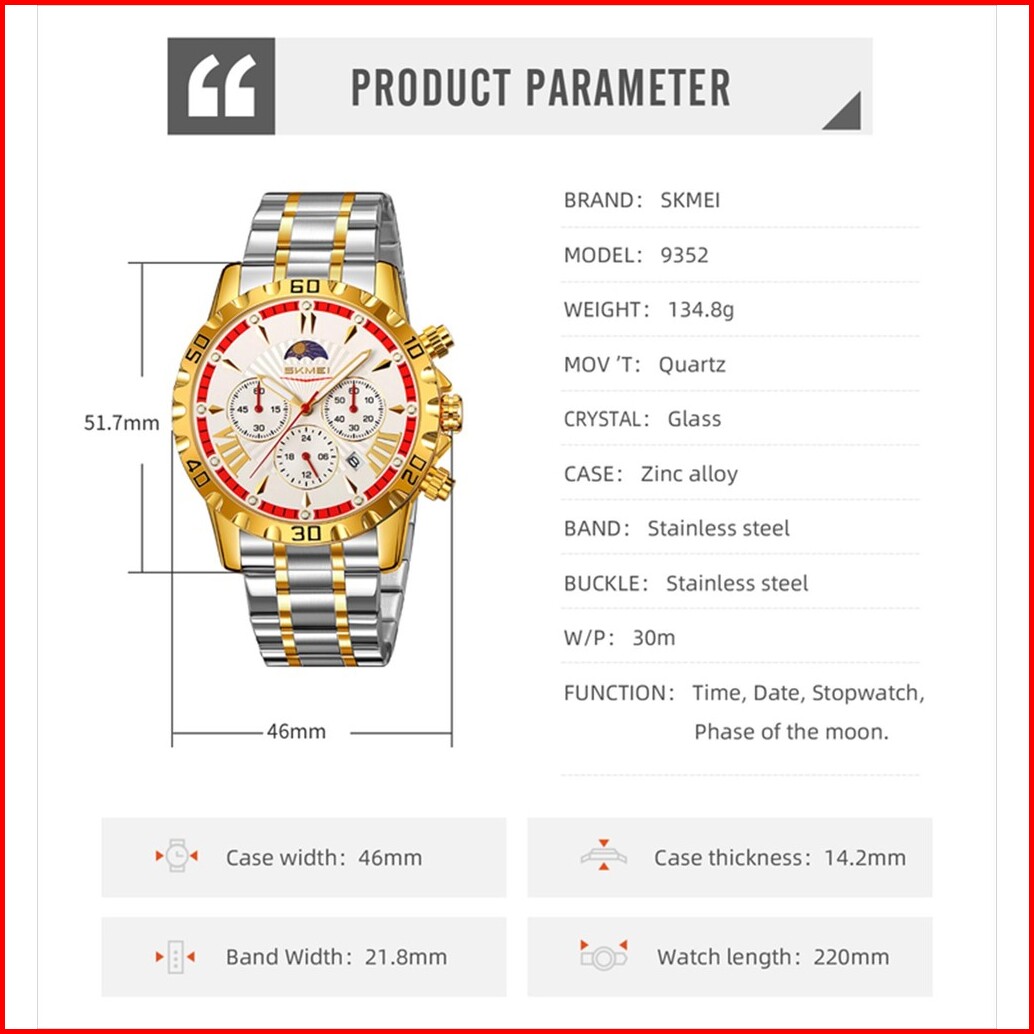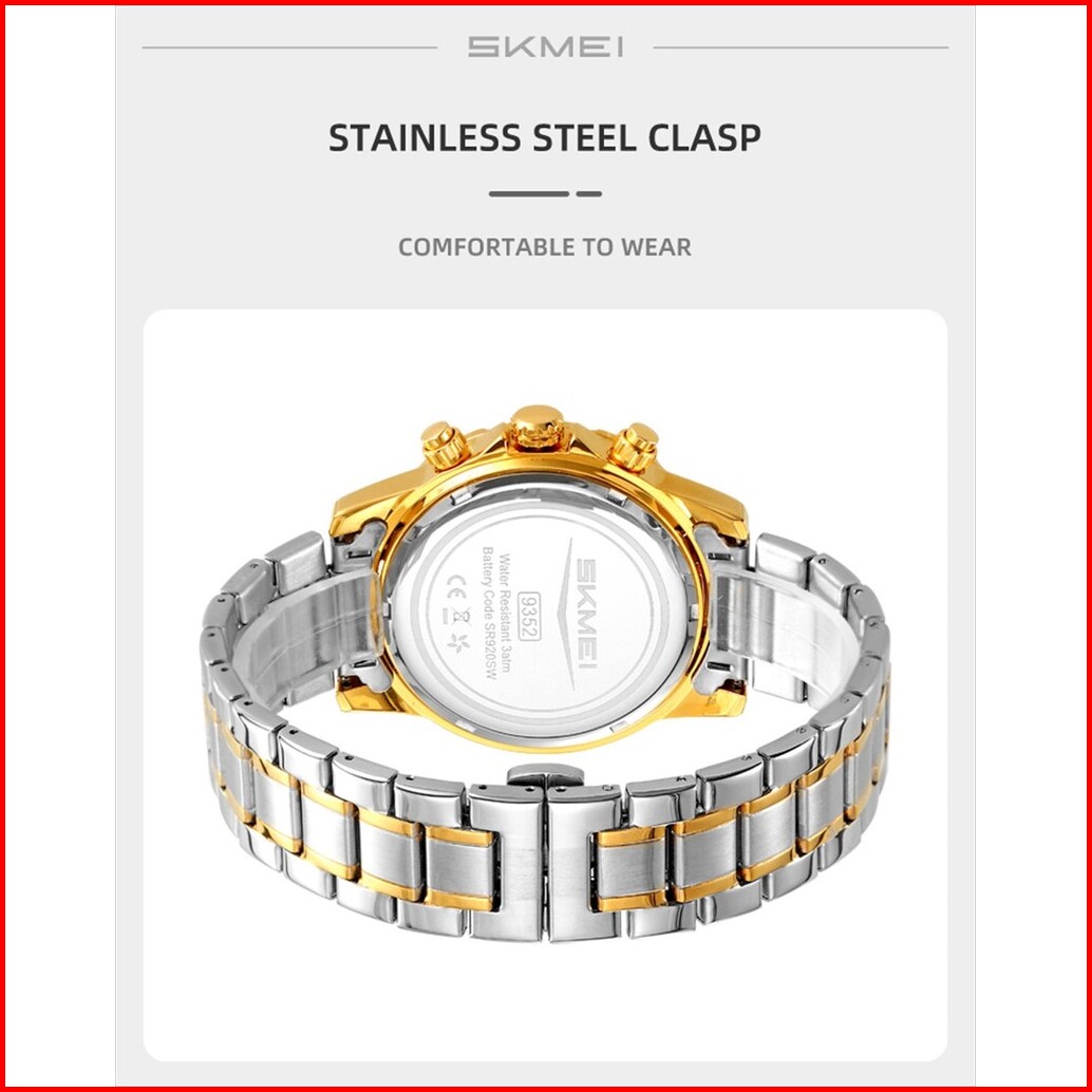 Jam Tangan Pria Skmei 9352 Analog Date Chrono Aktif Stainless
