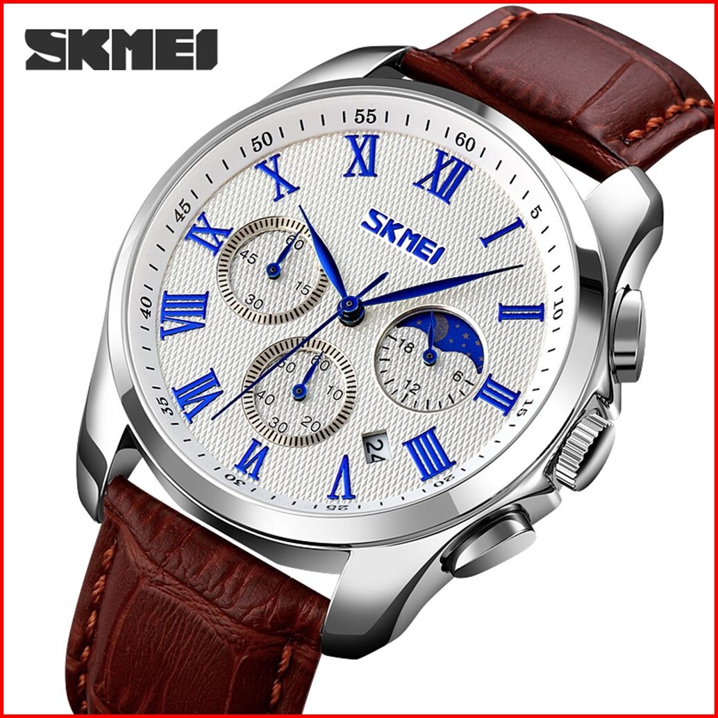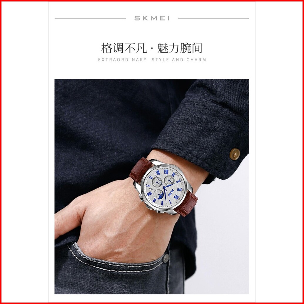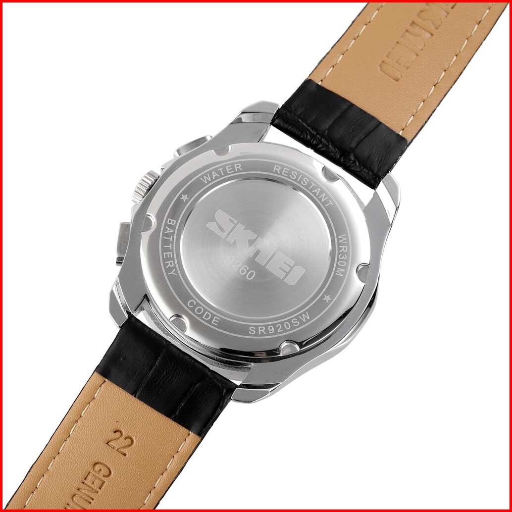 Jam Tangan Pria Skmei 9260 Analog Date Leather Strap Water Resist