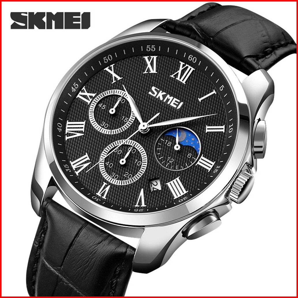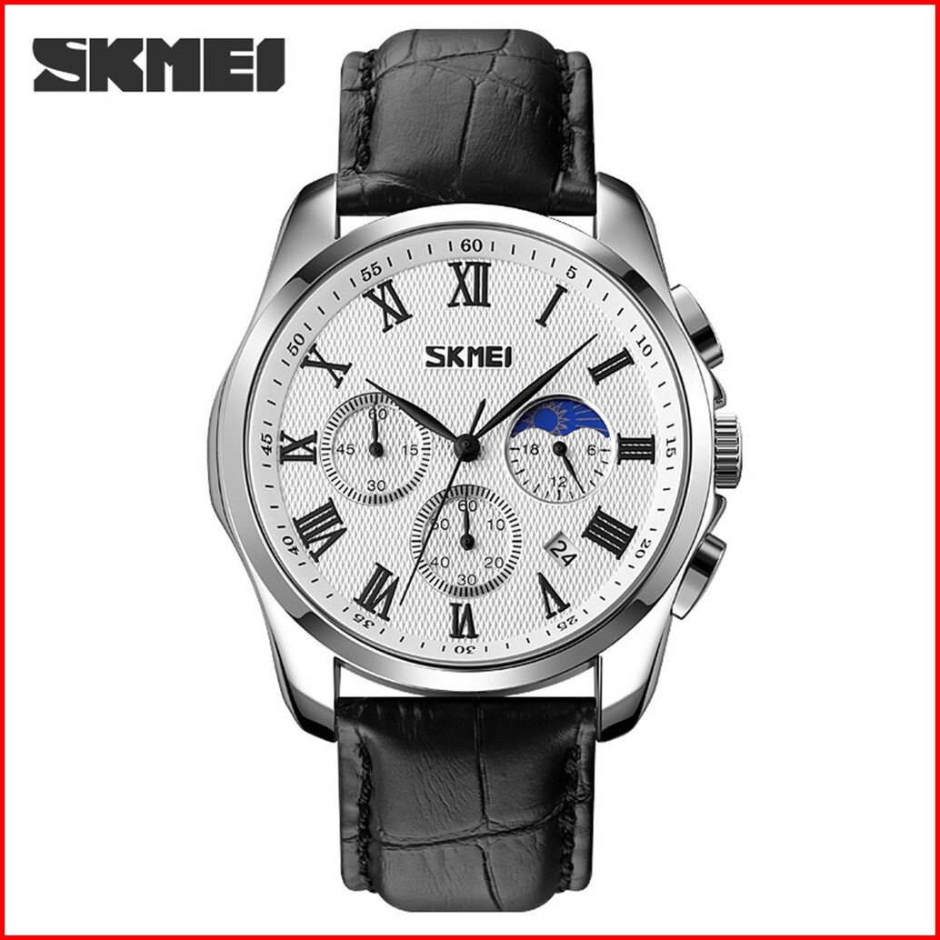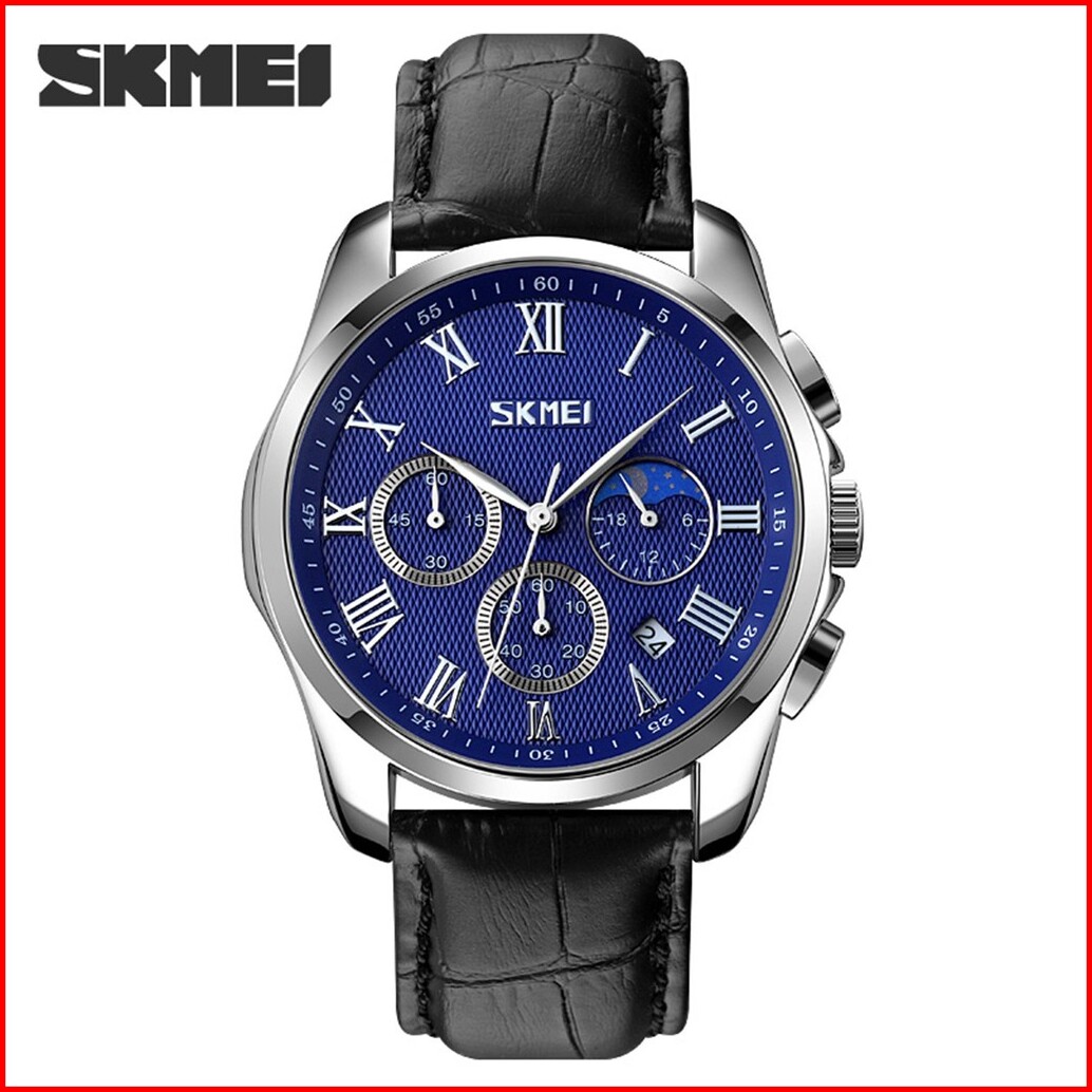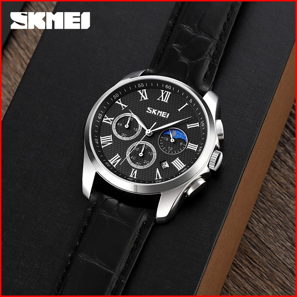 Jam Tangan Pria Skmei 9260 Analog Date Leather Strap Water Resist