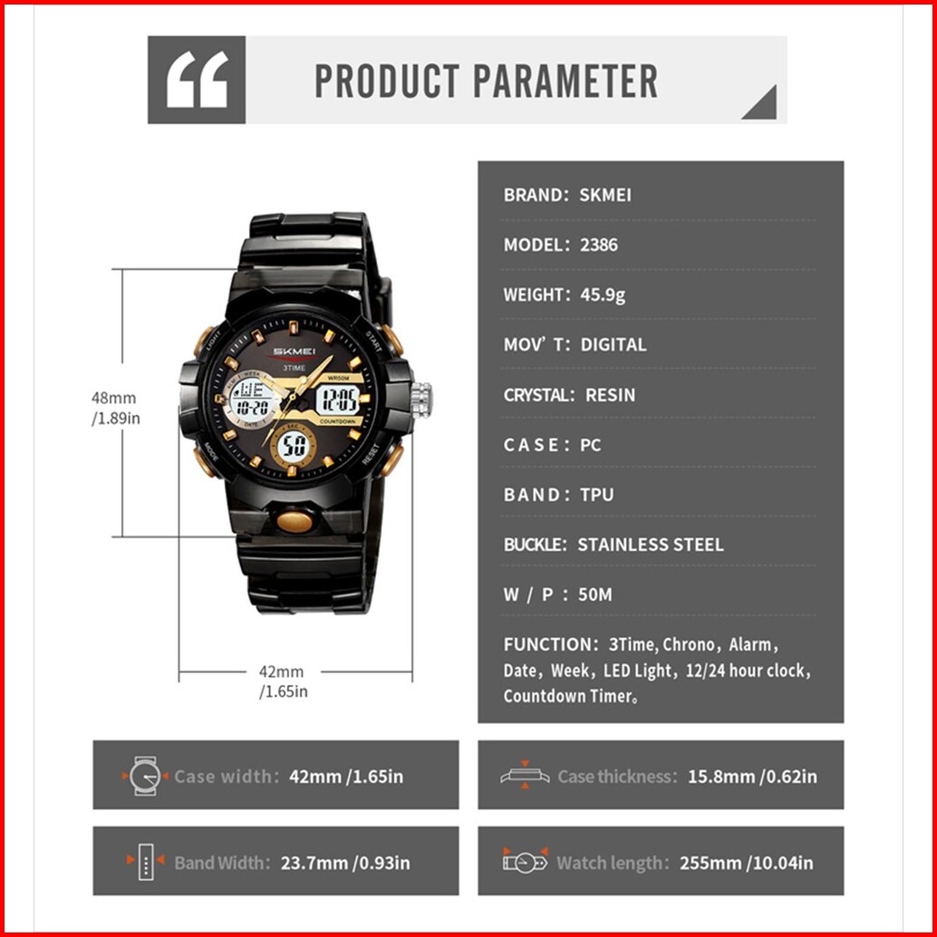 Jam Tangan Pria Skmei 2386 Rubber Digital Water Resist Original