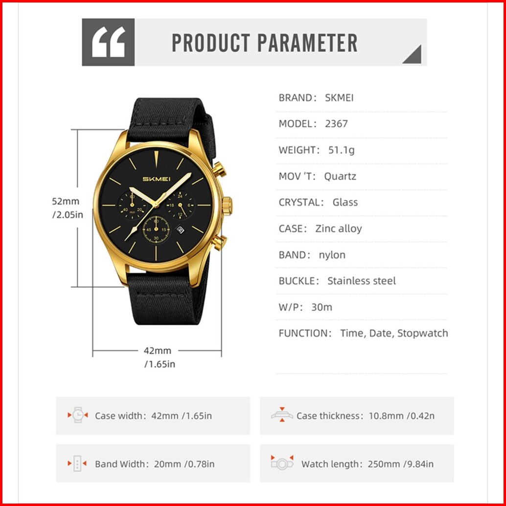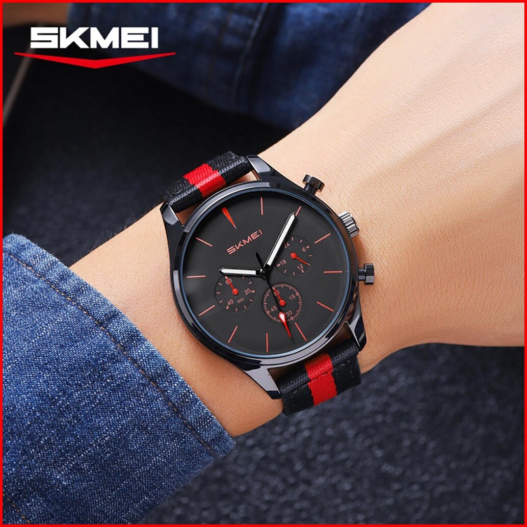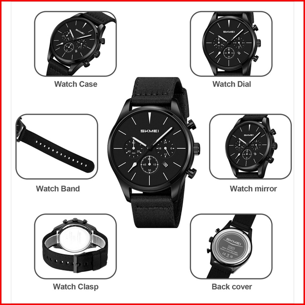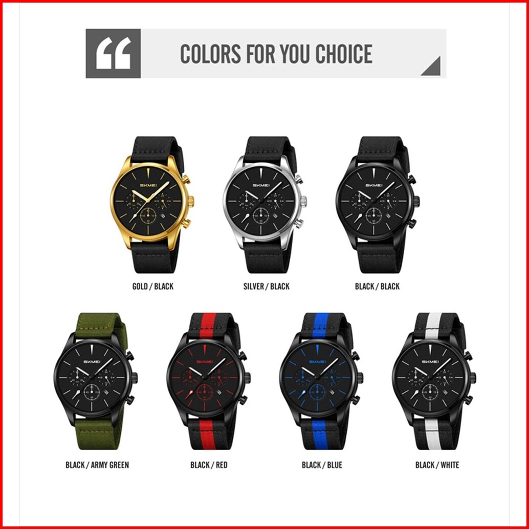 Jam Tangan Pria Skmei 2367 Analog Date Chronograph Nylon Strap