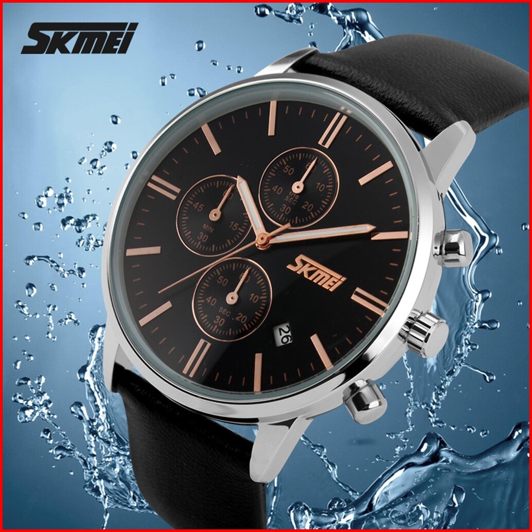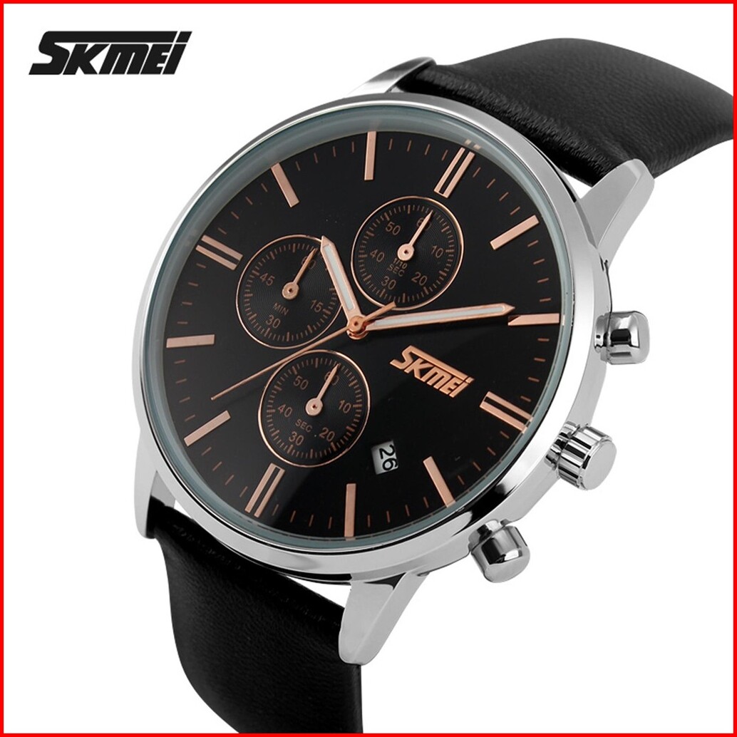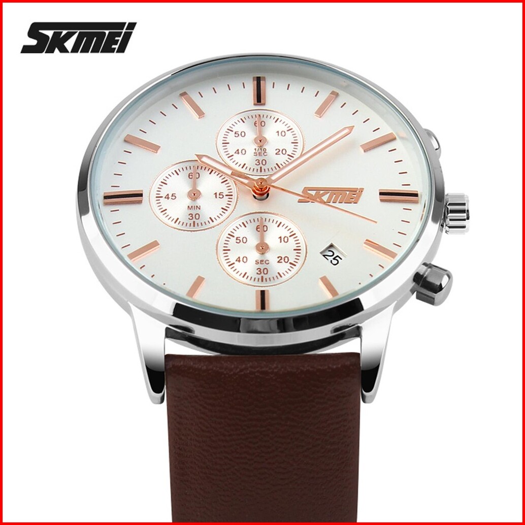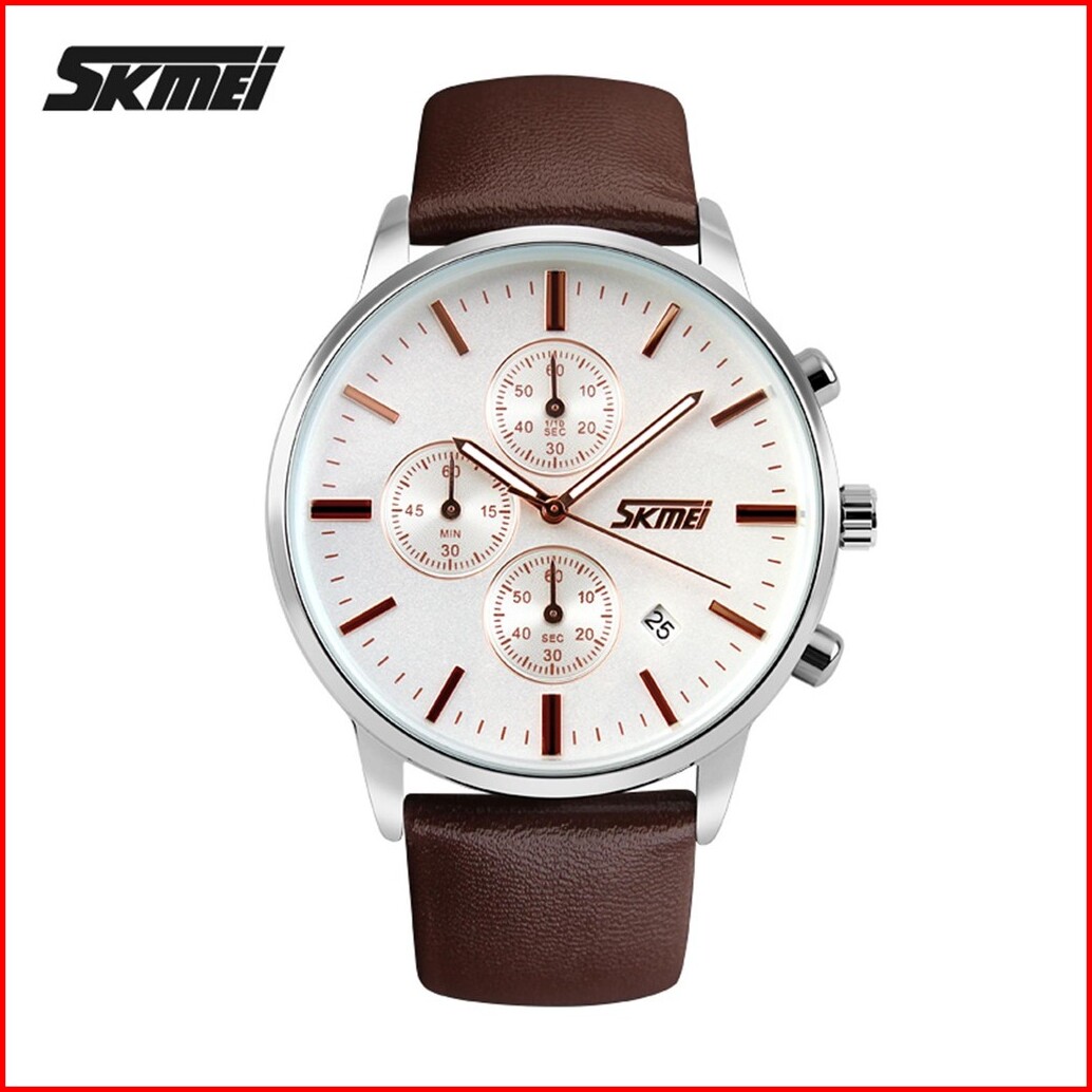Jam Tangan Pria Analog Date Skmei 9103 Leather Strap Tahan Air