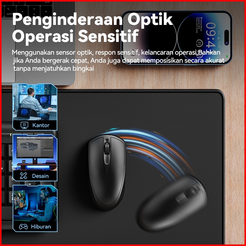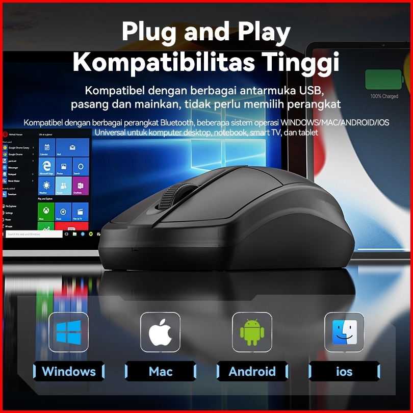Basike Mouse Wireless Bluetooth Silent Portable Untuk Pc Laptop Windows Mac Linux Chromeos Gaming