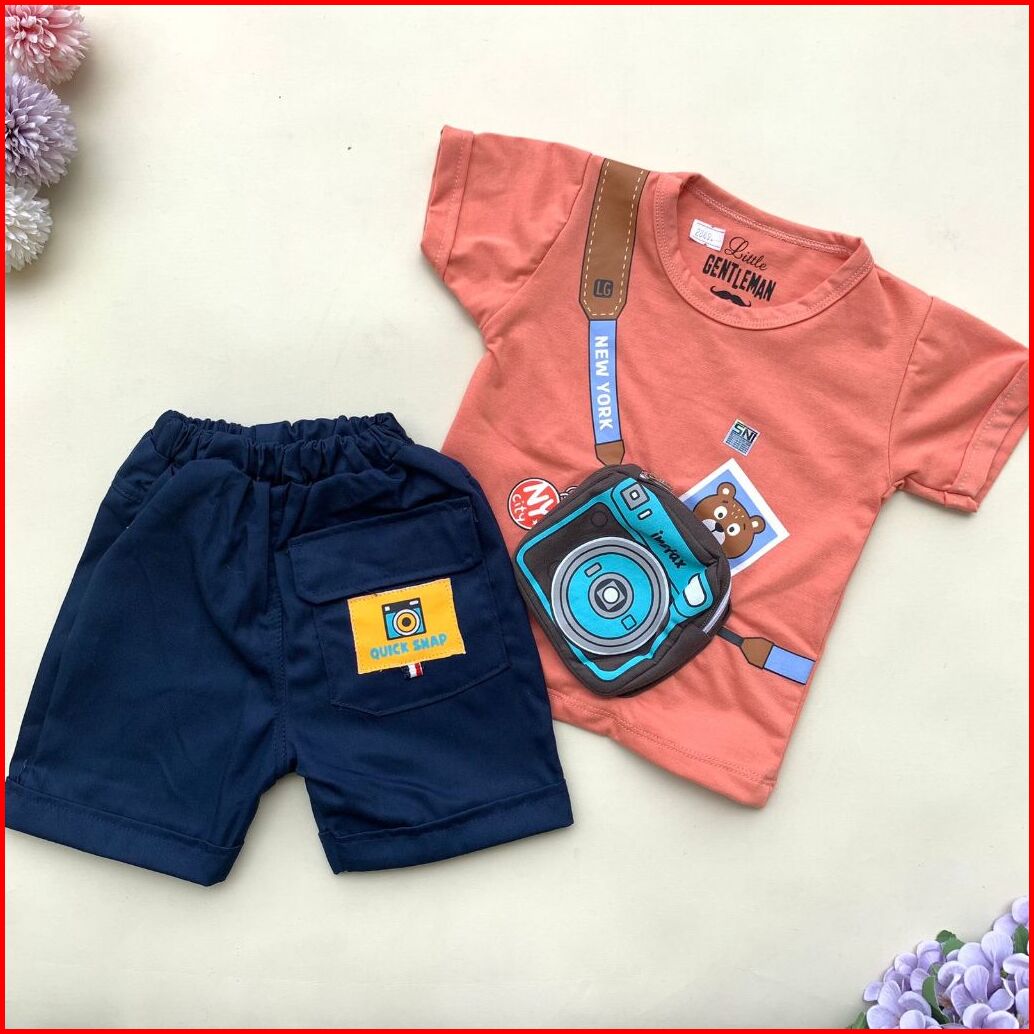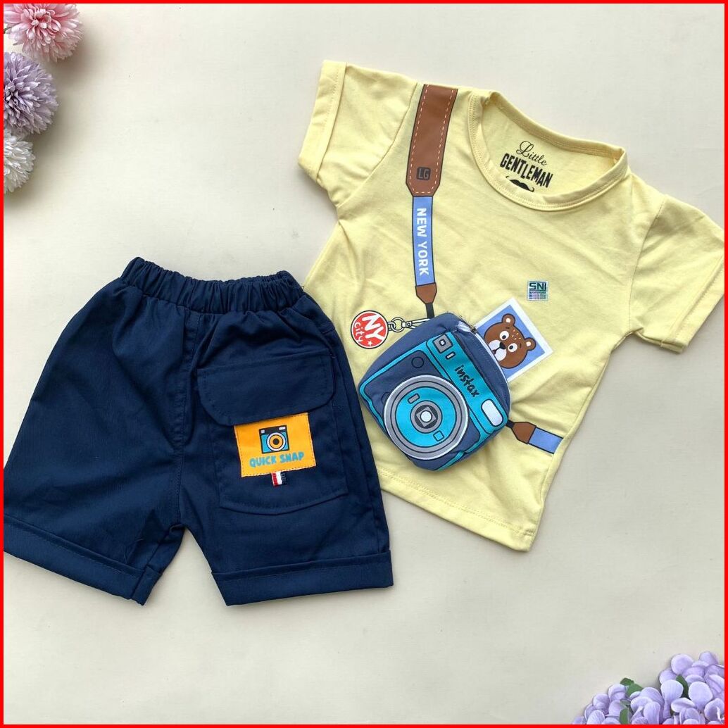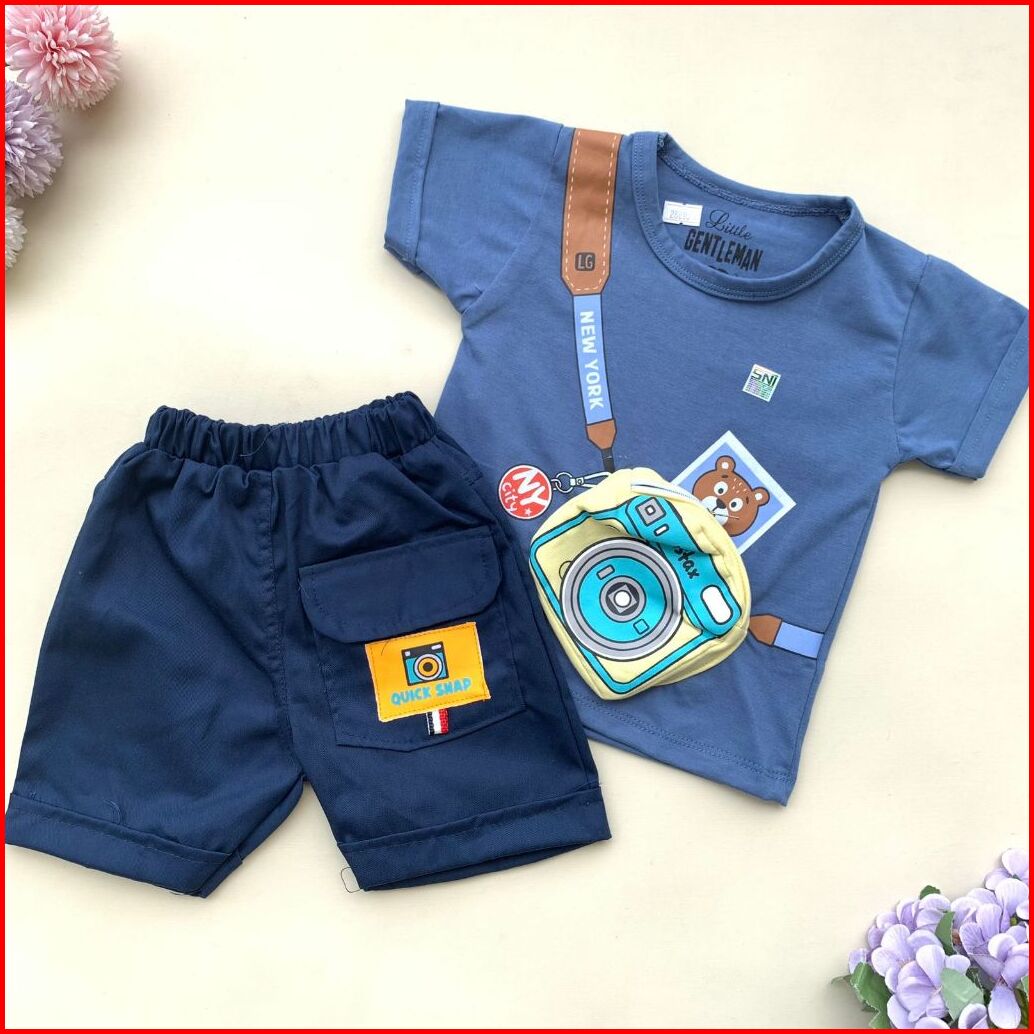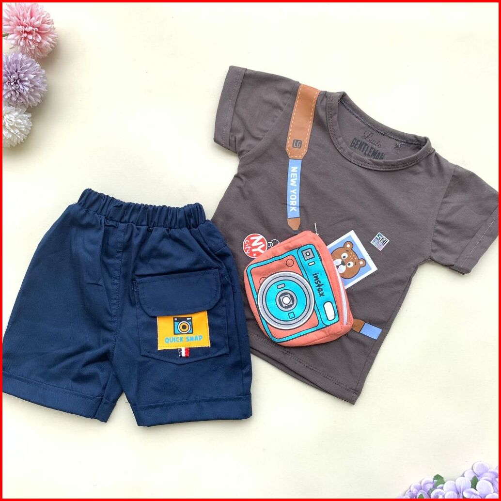 Quebeecloth -baju Setelan Kaos Celana Motif Kamera 3d Lucu Setelan Kekinian Anak Bayi Laki Laki Baby Boy Keren Murah -in