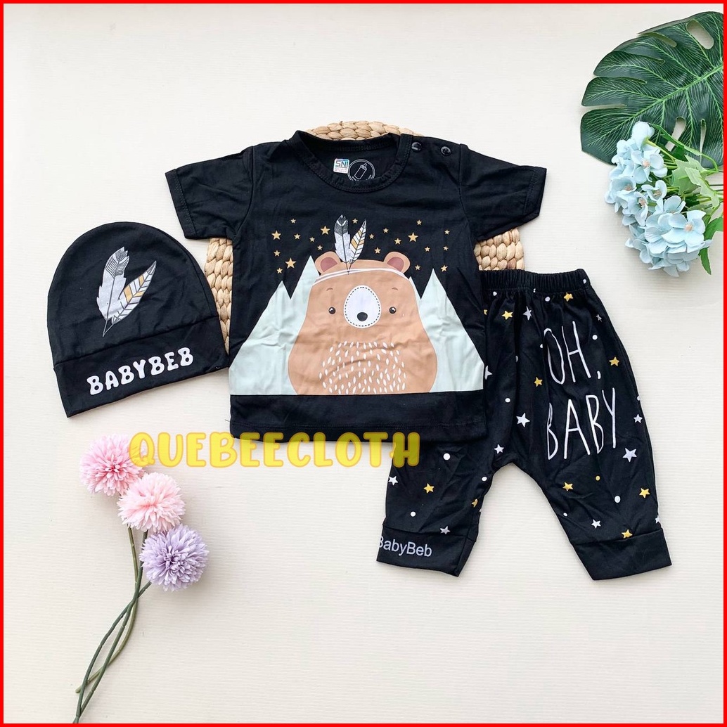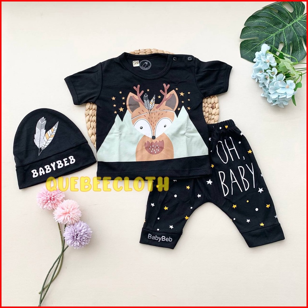 Quebeecloth Fashion Bayi Cowok Setelan Motif Hewan Lucu 1set Baju Celana Topi -ohb