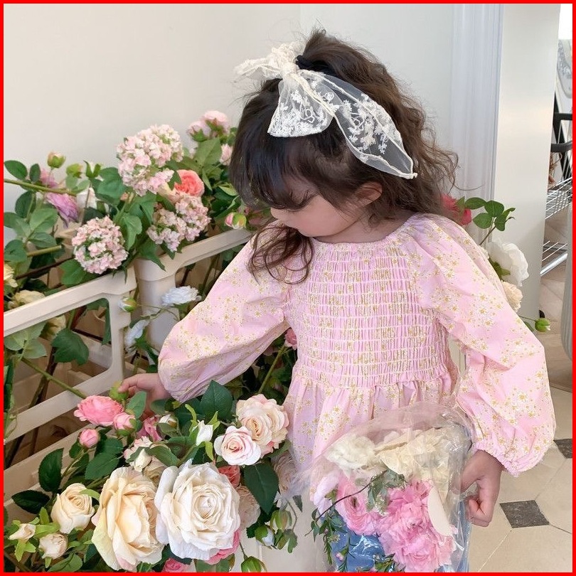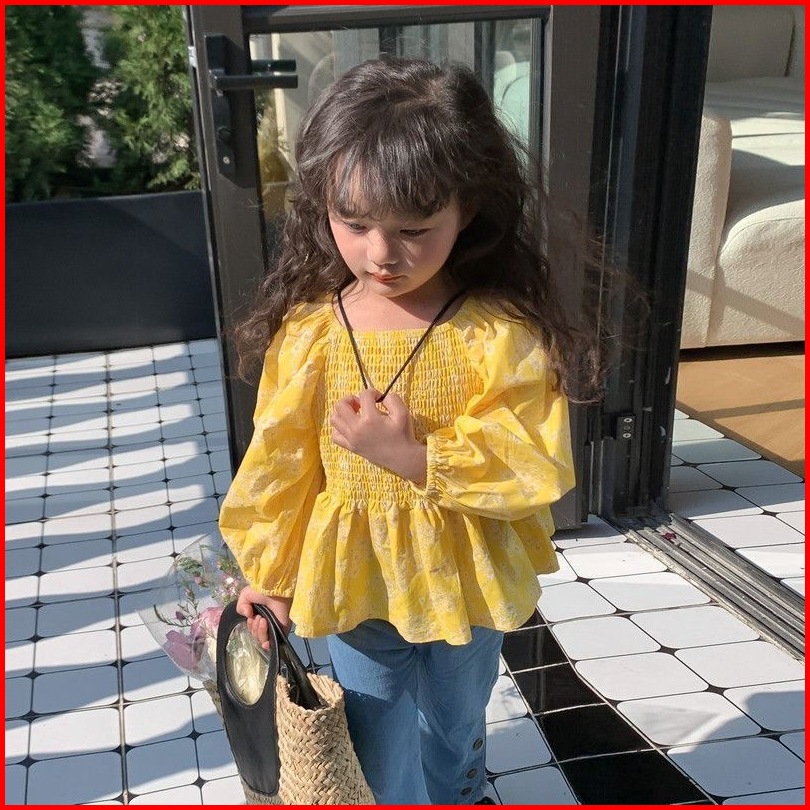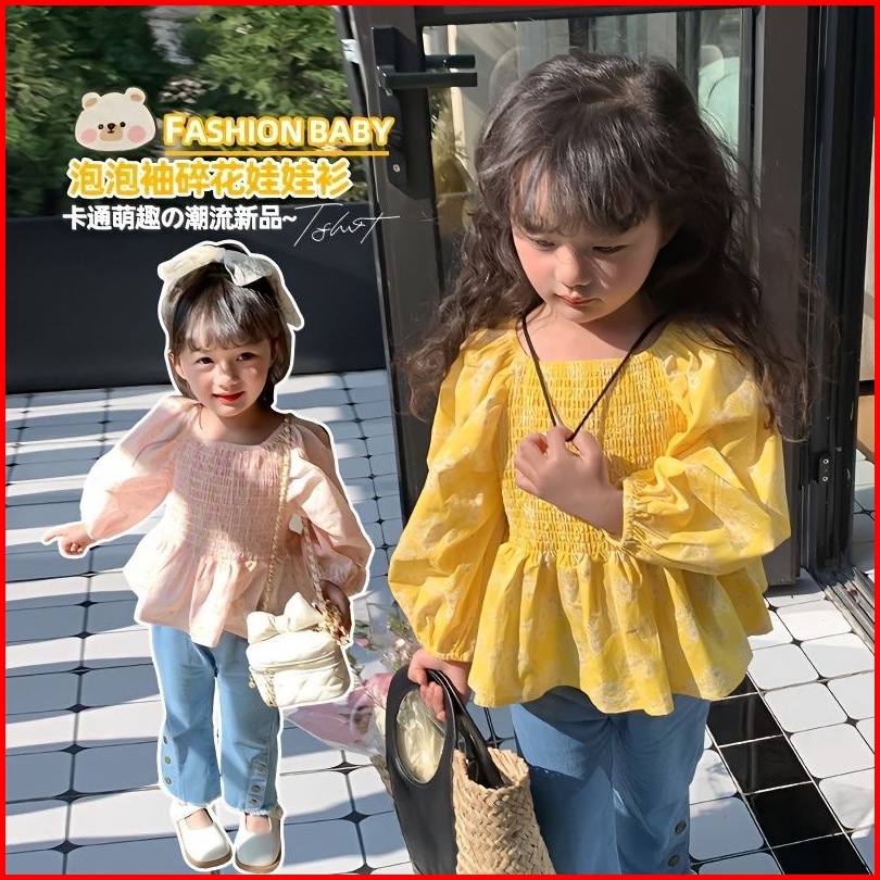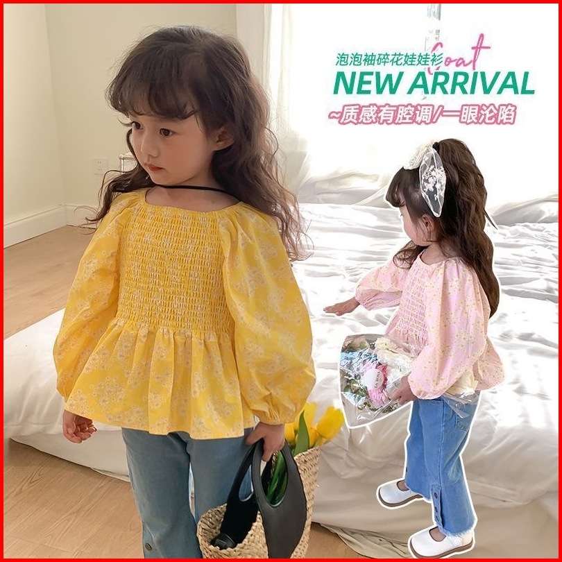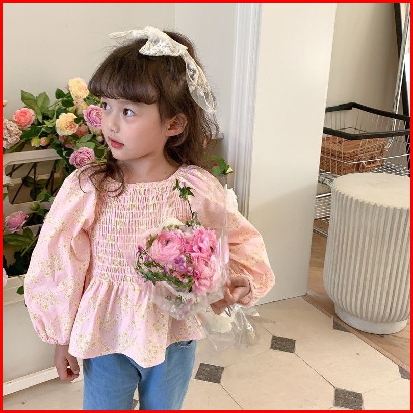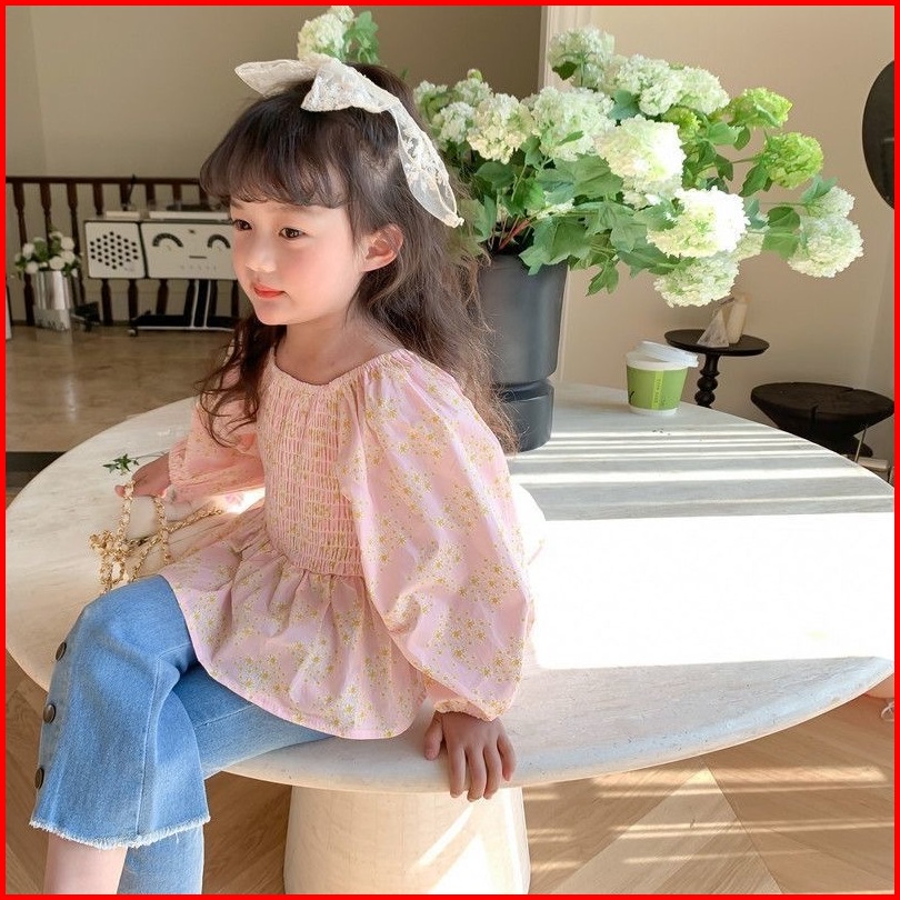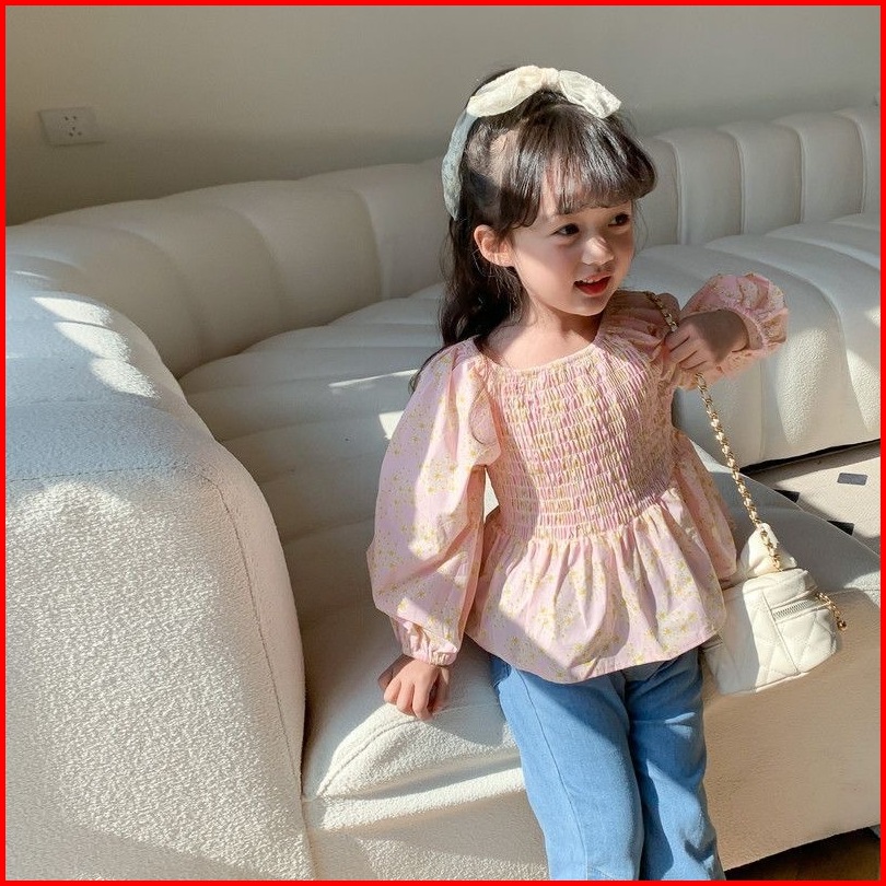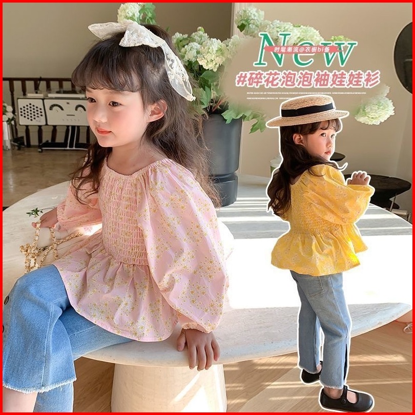 Princess Kesli 2-11 Tahun Kemeja Anak Perempuan Lengan Puff Modis Dengan Motif Bunga Serbaguna