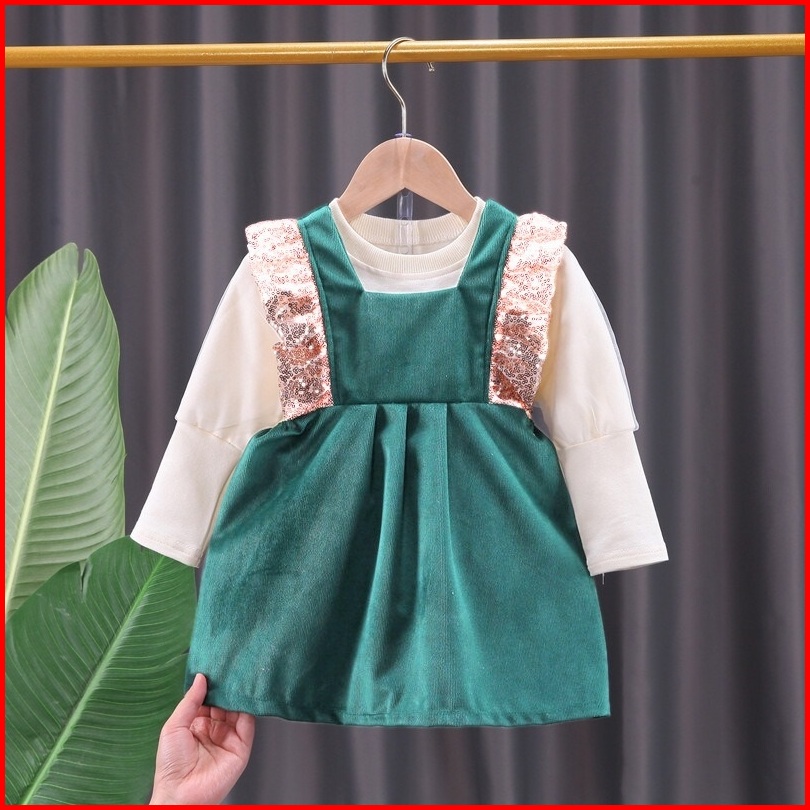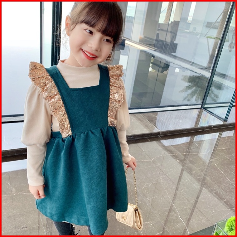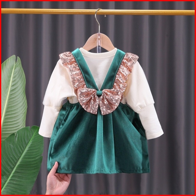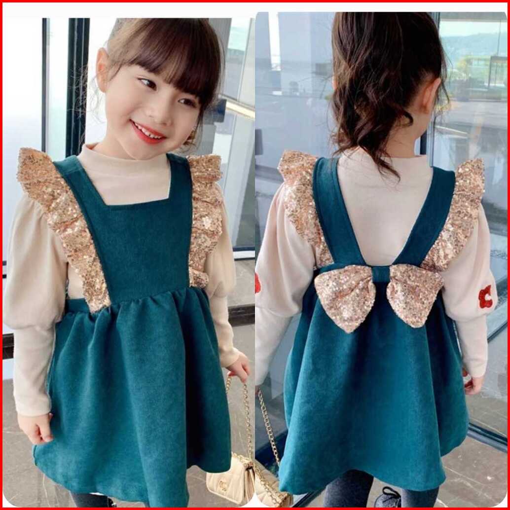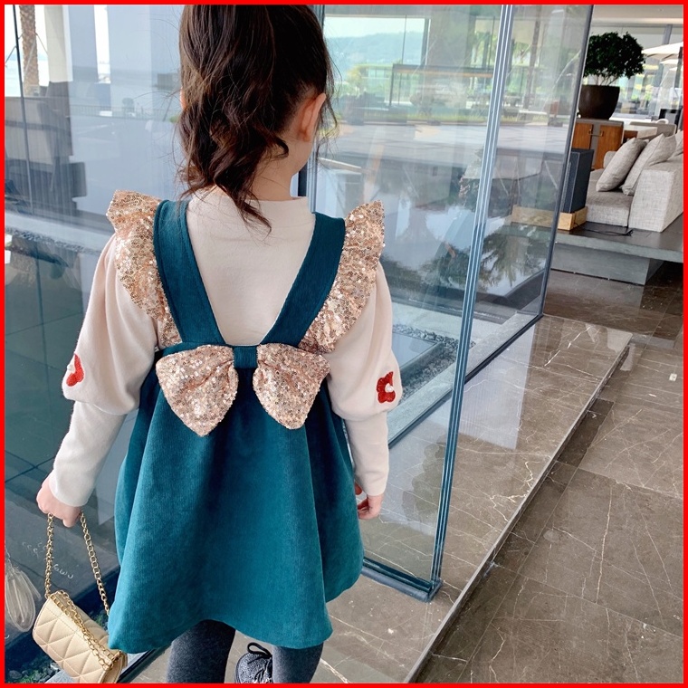 Meandboss Dr146 Dress Anak Perempuan Overall 2in1 Gliter Pita Love Sleeve