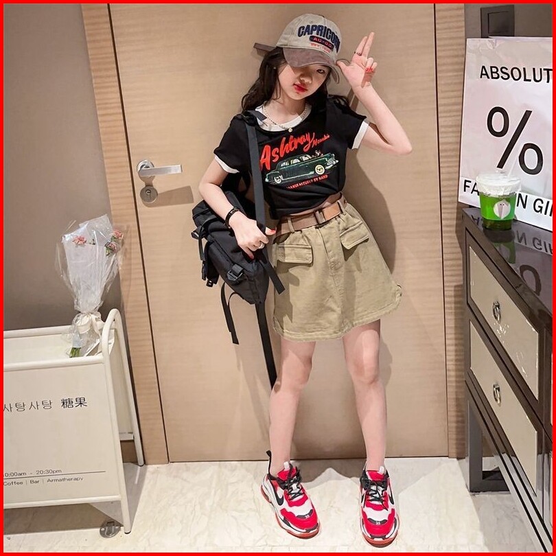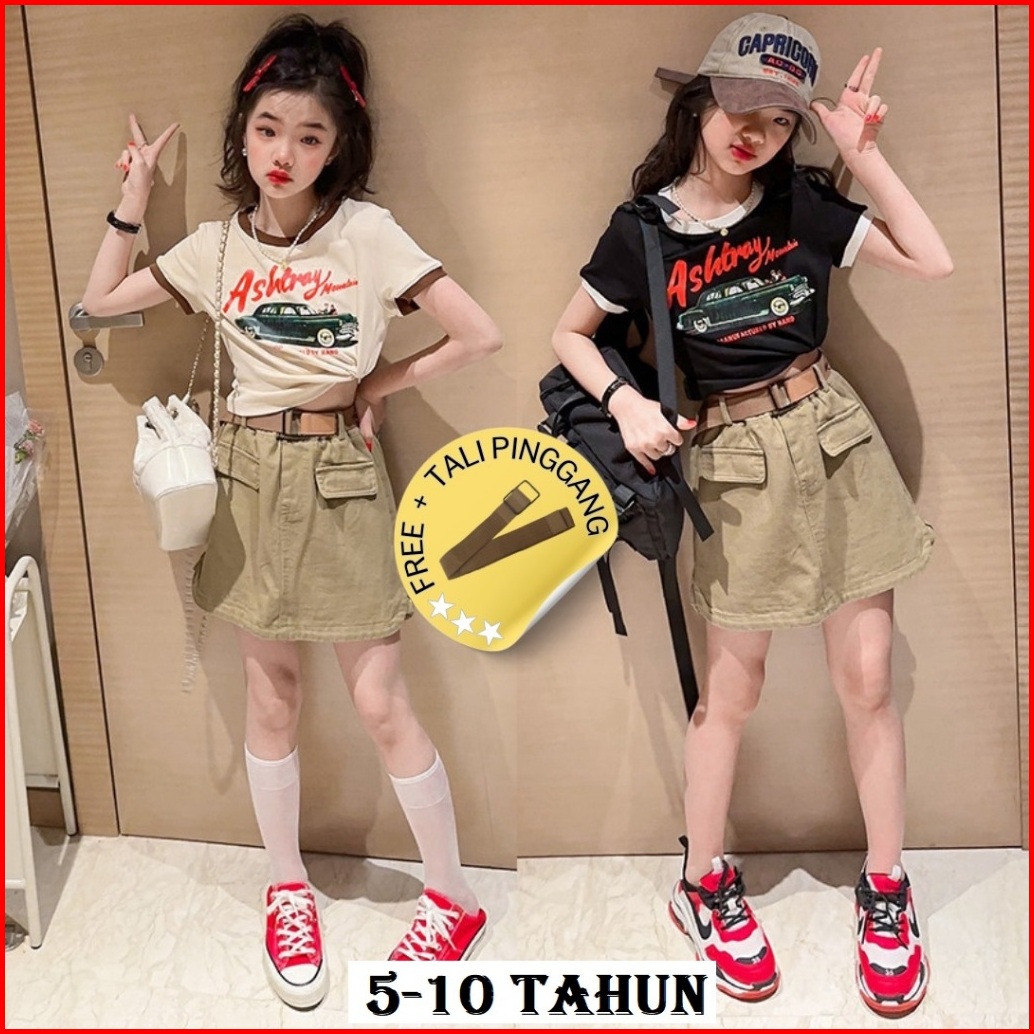 Meandboss Ssp57-setelan Set Anak Besar Remaja Teenager Tanggung Tanktop And Cargo Skort