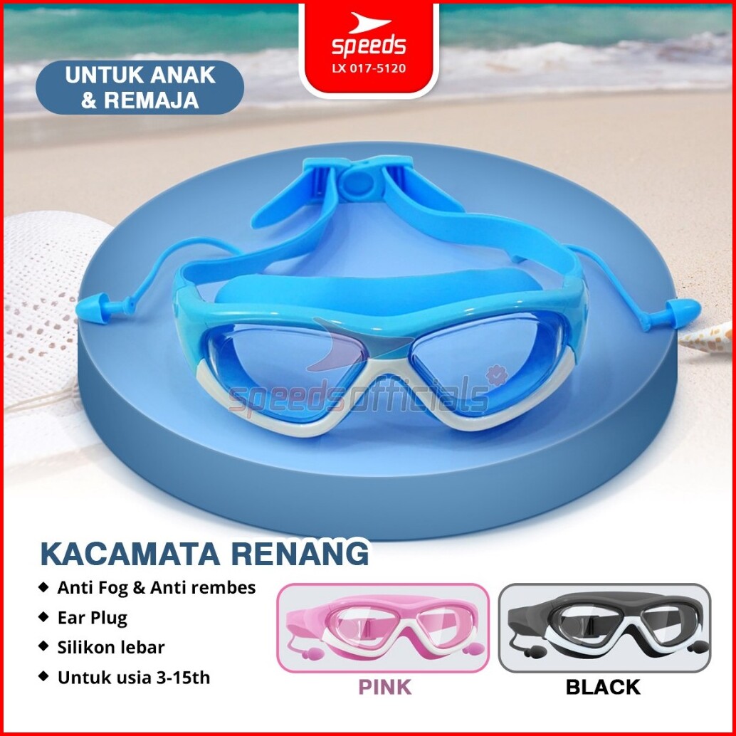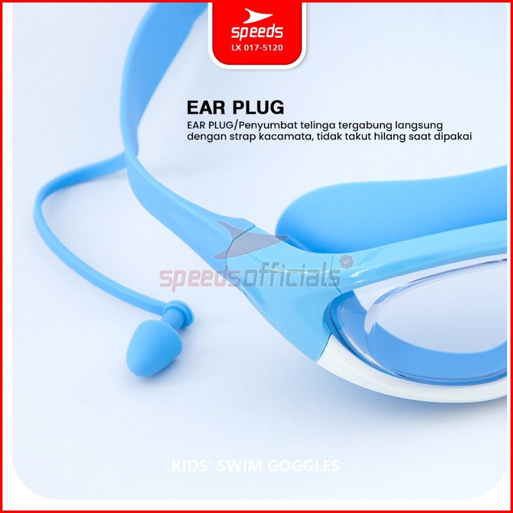 Speeds Kacamata Renang Anak Elastis Built-in Earplug Anti Fog Uv Kids Swimming Glasses Goggles Perlengkapan Renang 017-5