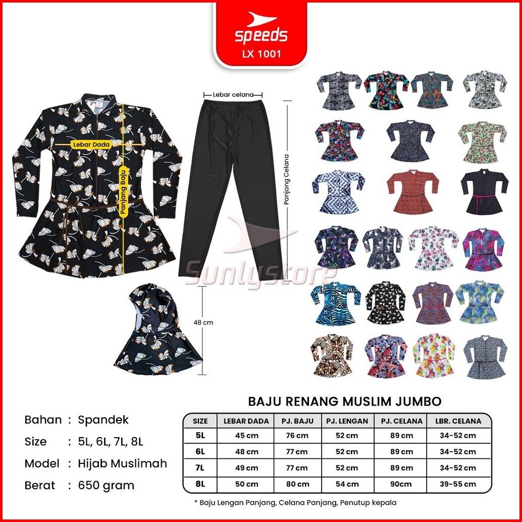 Speeds Baju Renang Wanita Muslimah Jumbo 5l 6l 7l 8l Swim Wear Pakaian Renang Lx 1001