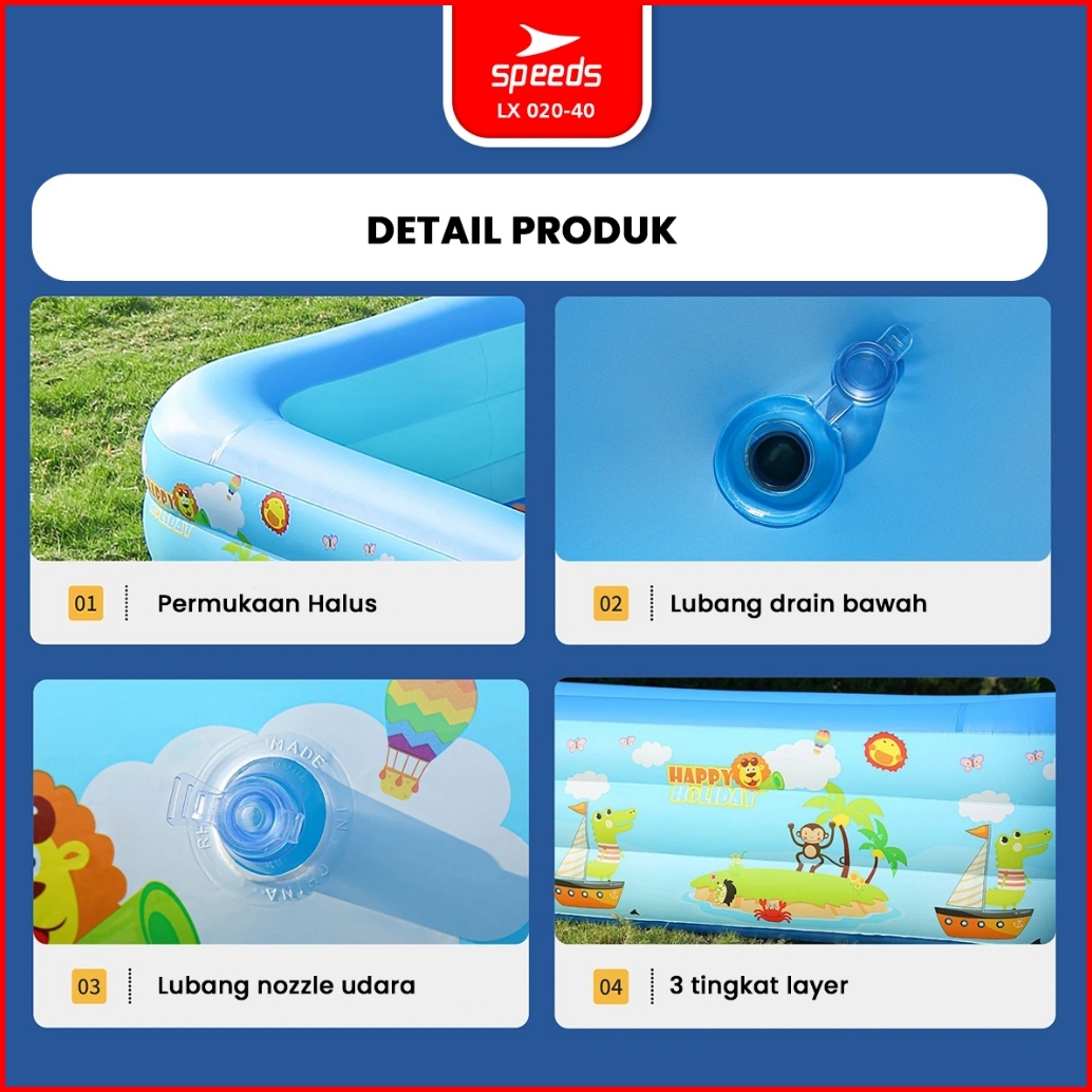 Speeds Kolam Renang Tiup Jumbo 310x183x56cm Kolam Renang Motif Cerah Bahan Lentur Inflatable Swimming Pool For Kids 020-