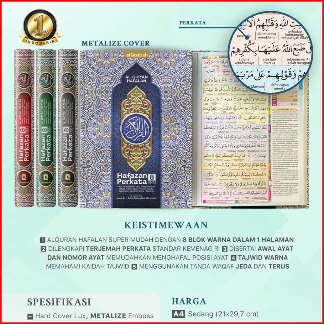 Al-quran Hafalan Hafazan Perkata Latin 8 Blok Transliterasi Tajwid A4
