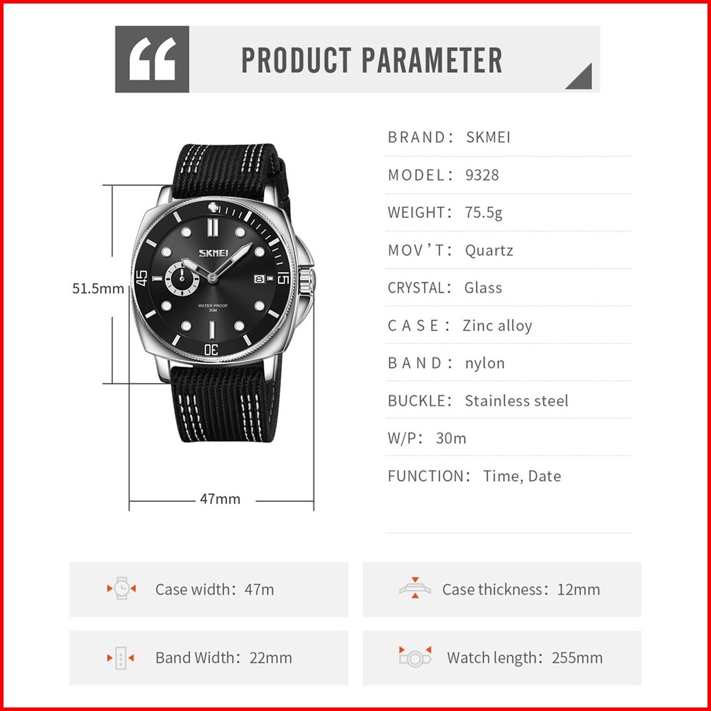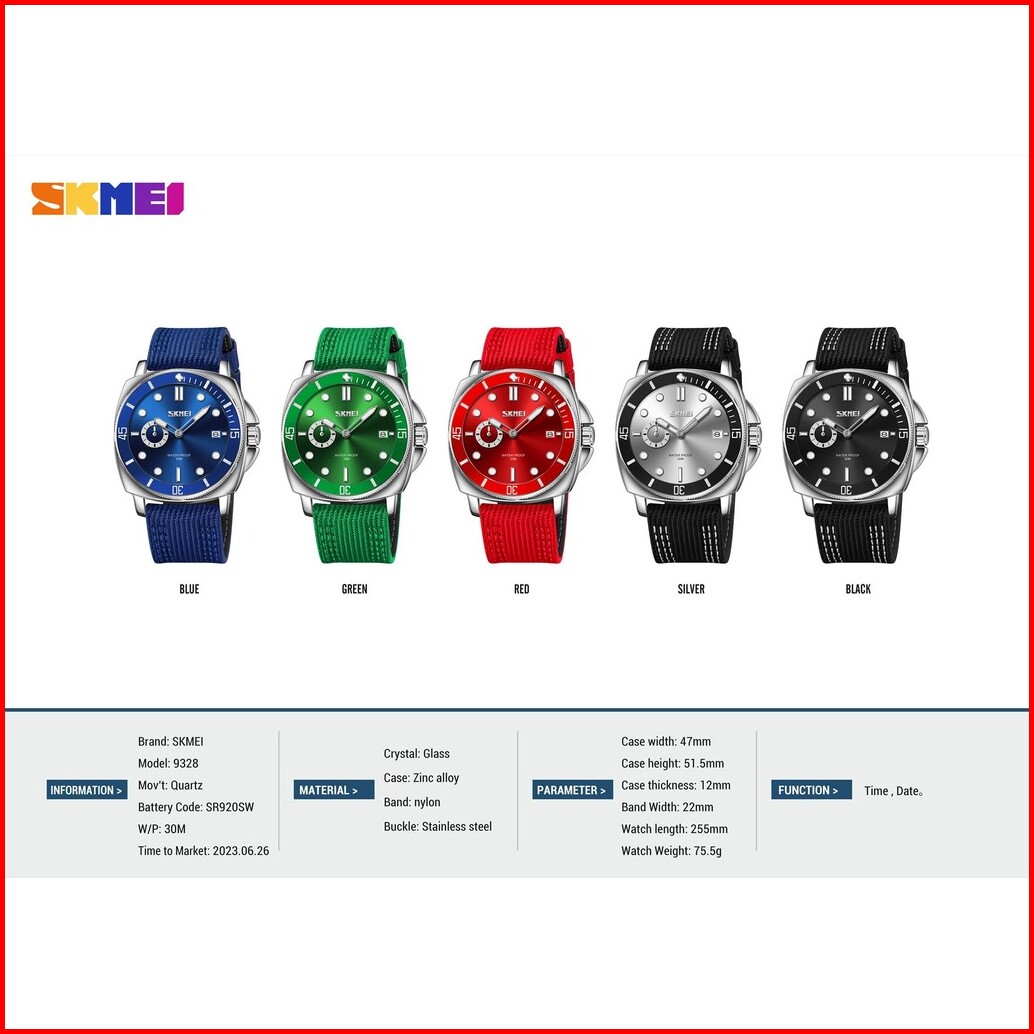 Jam Tangan Pria Skmei 9328 Analog Date Chronograph Nylon Strap