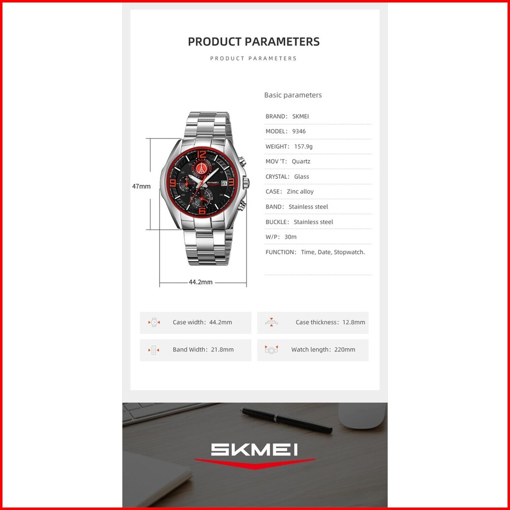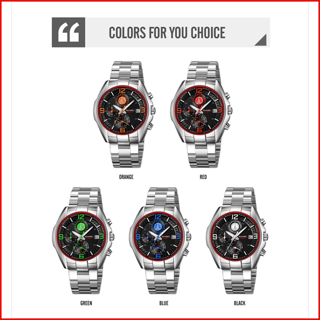 Jam Tangan Pria Skmei 9346 Analog Date Chrono Aktif Stainless Water Resist 30m