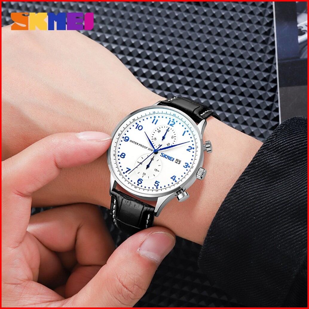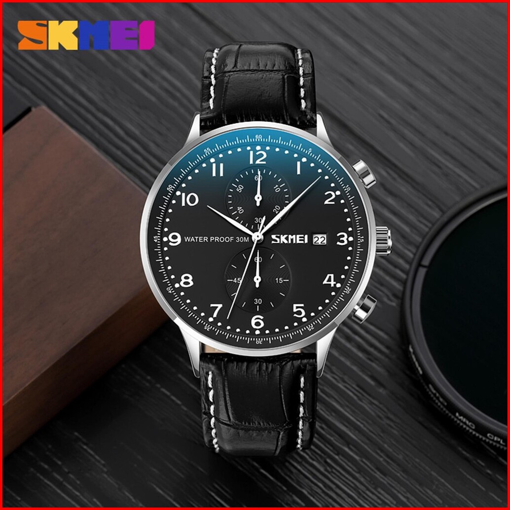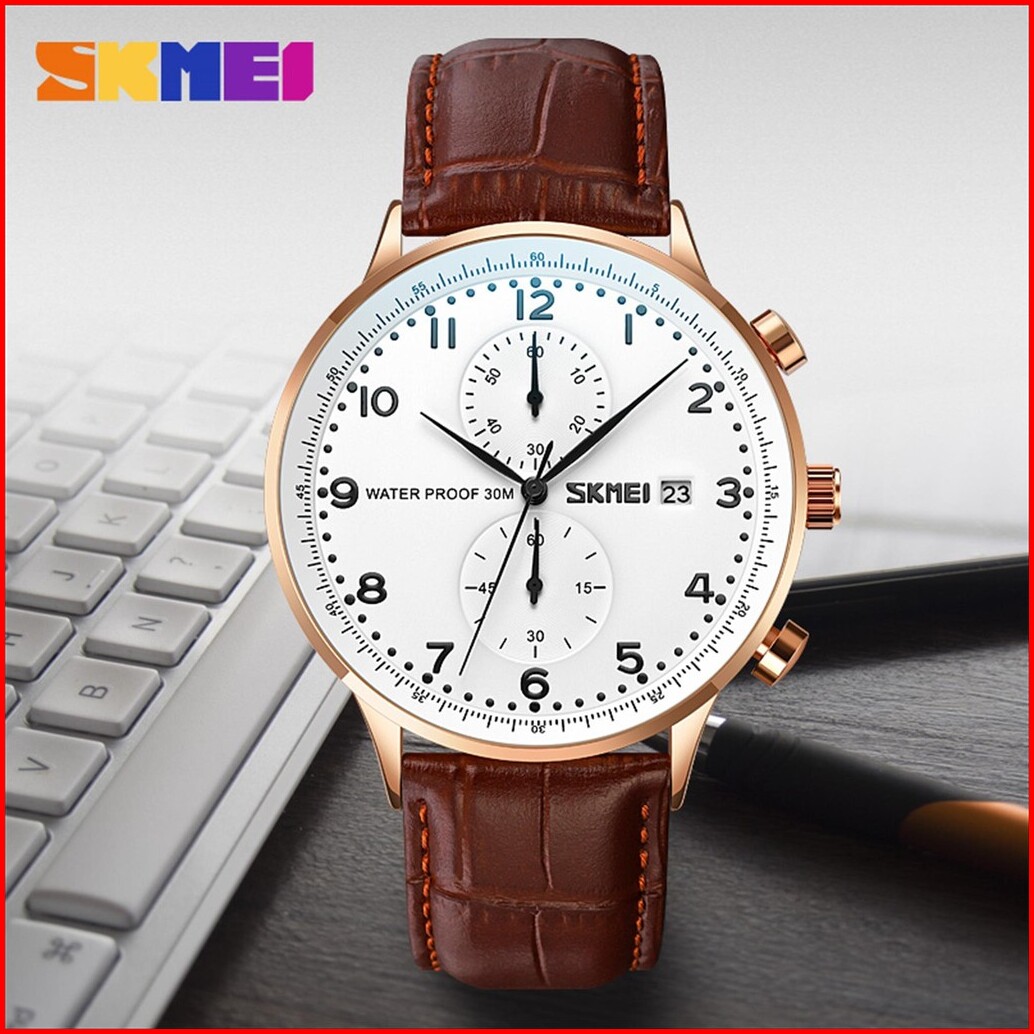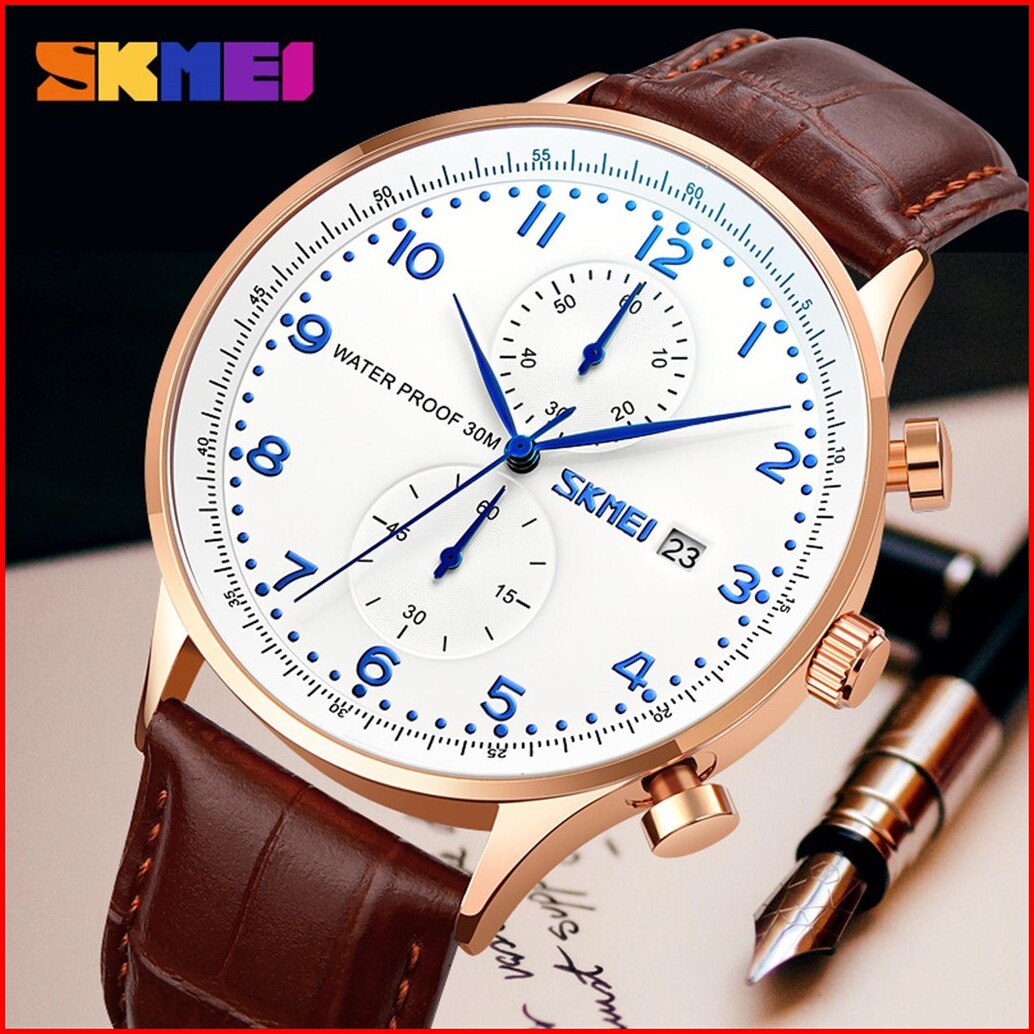 Jam Tangan Pria Skmei 9301 Analog Date Chronograph Leather
