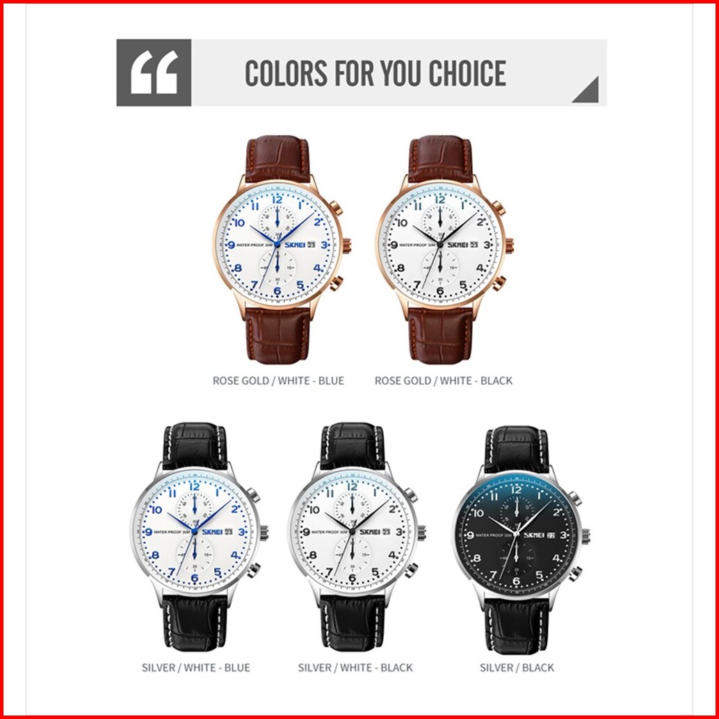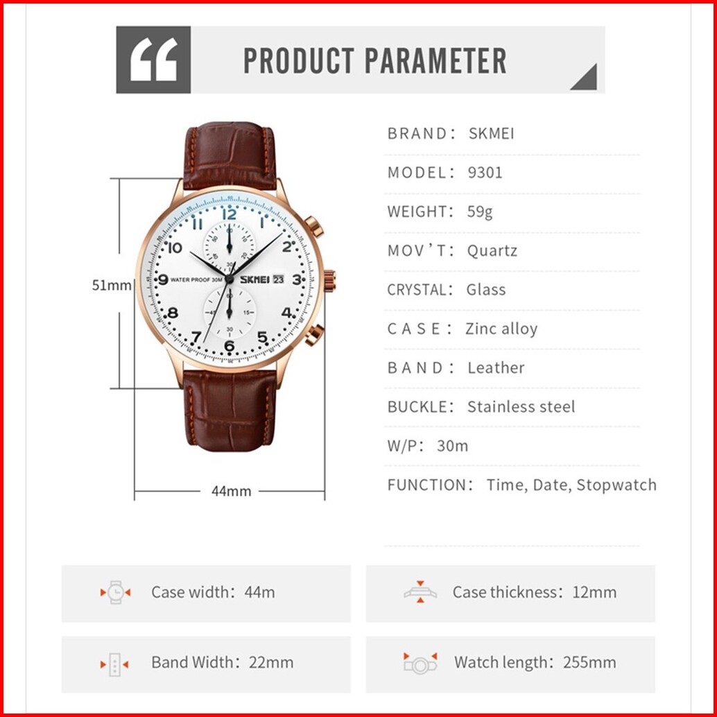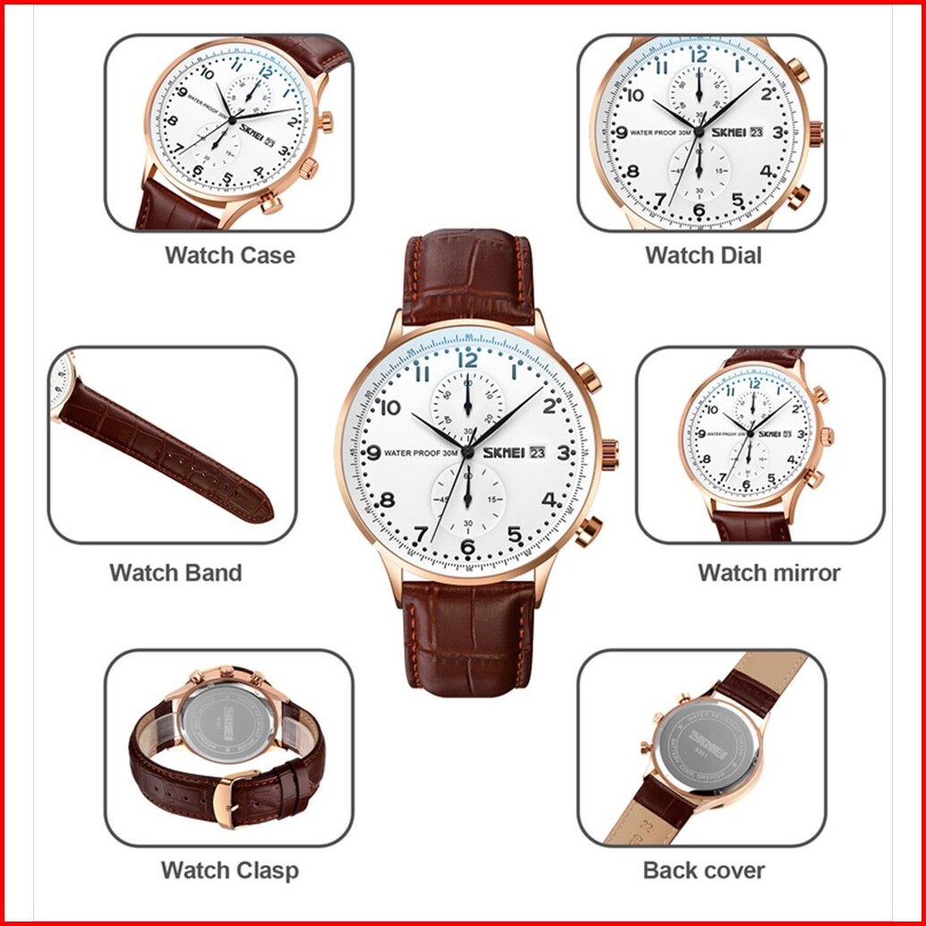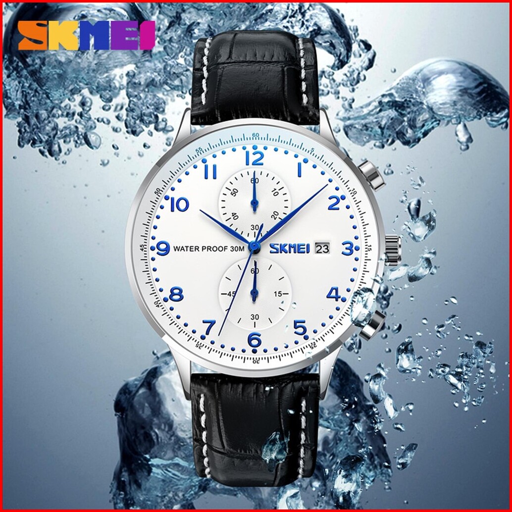 Jam Tangan Pria Skmei 9301 Analog Date Chronograph Leather