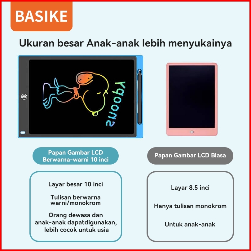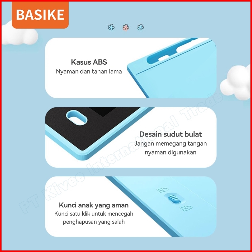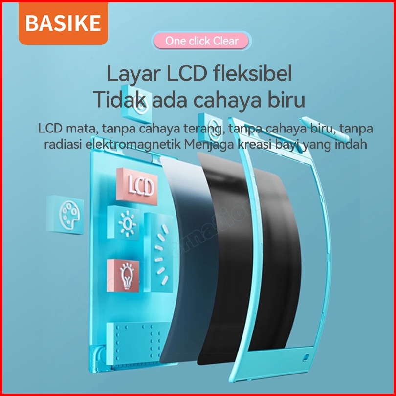 Basike Drawing Tablet Writing Papan Tulis Lcd One Key To Clear With Lock Stylus Pen Berwarna-warni