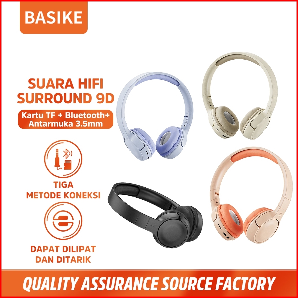 Basike Headphone Wireless Bluetooth Headset Gaming 9d Hifi Music Stereo Bass Makaron Original