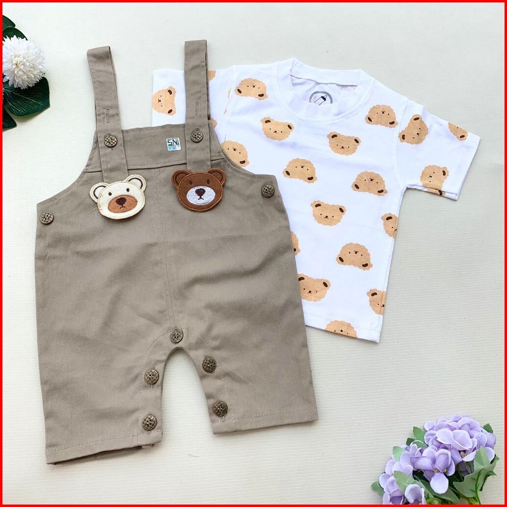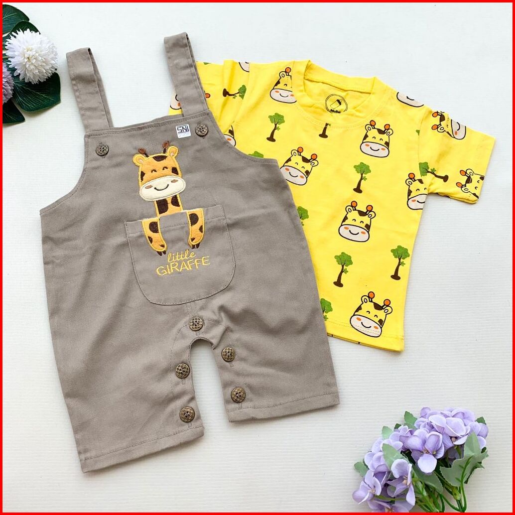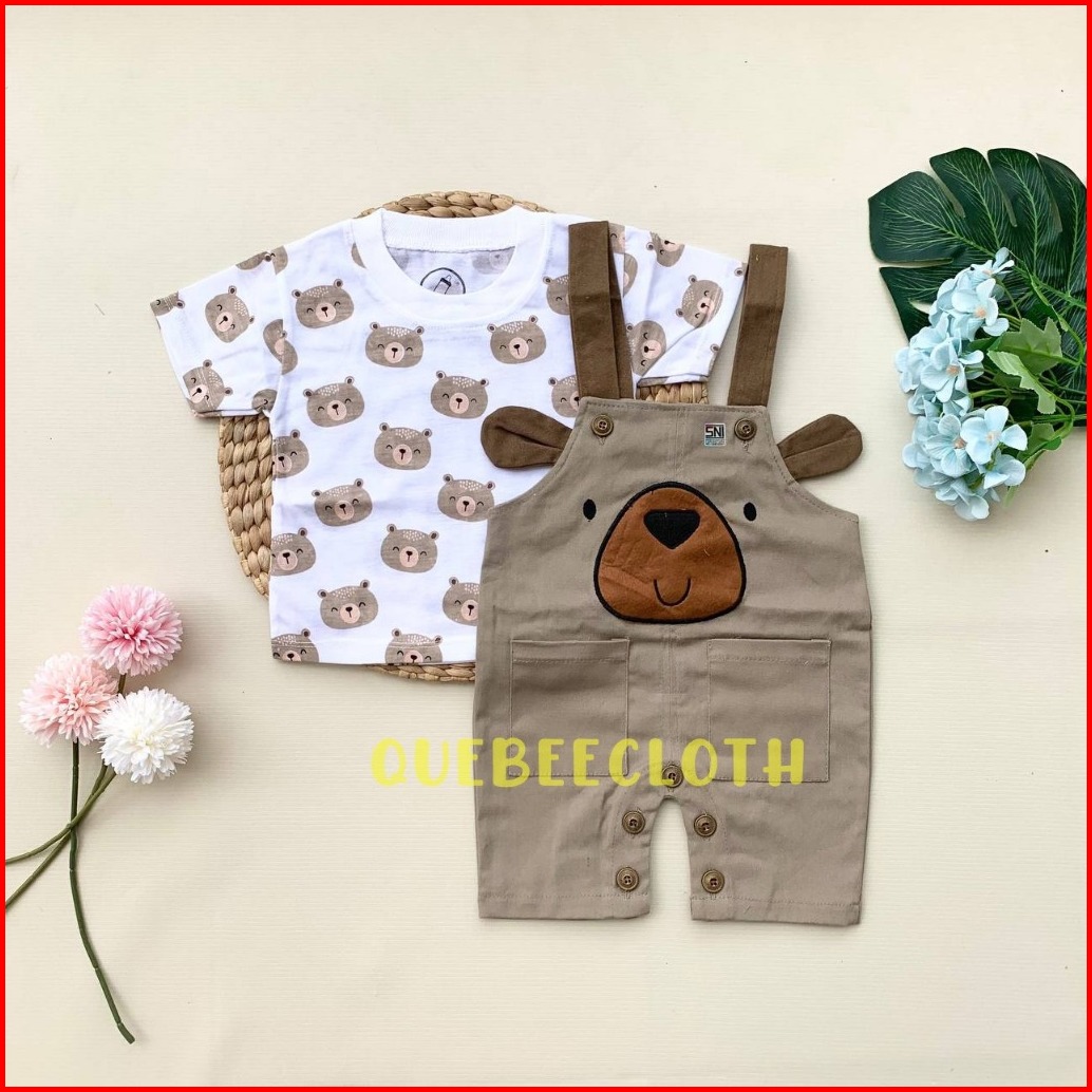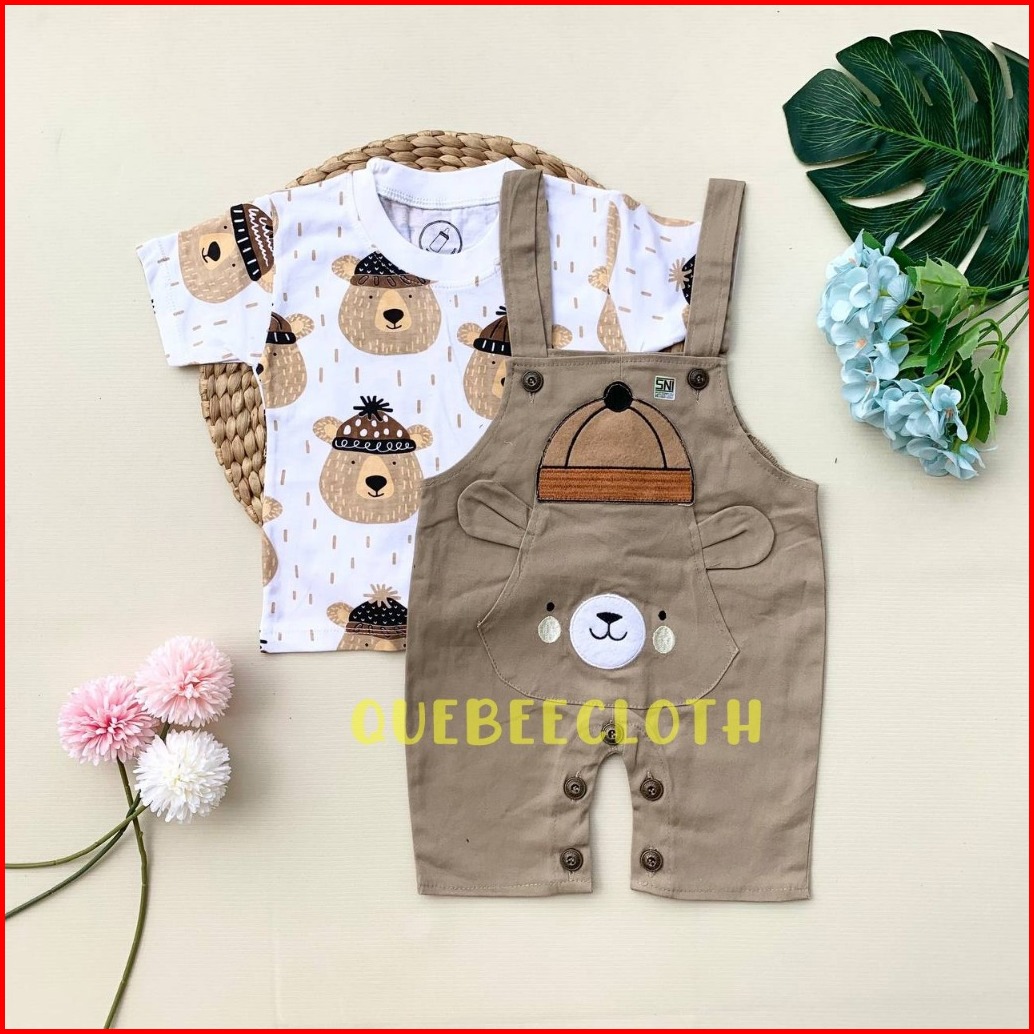 Quebeecloth Baju Setelan Kaos Overall Chinos Kodok Bagus Variasi Hewan Lucu Fashion Anak Cowok Bayi Lakilaki Kekinian -c
