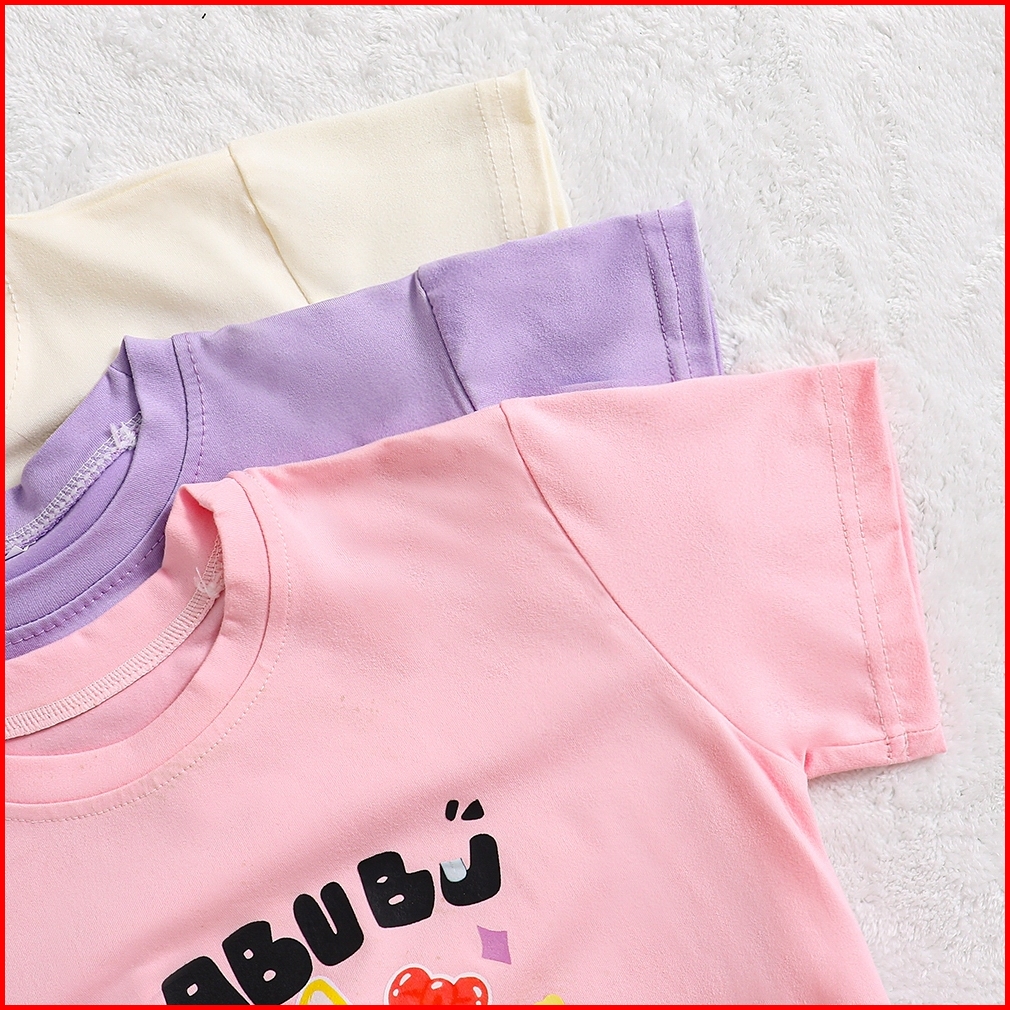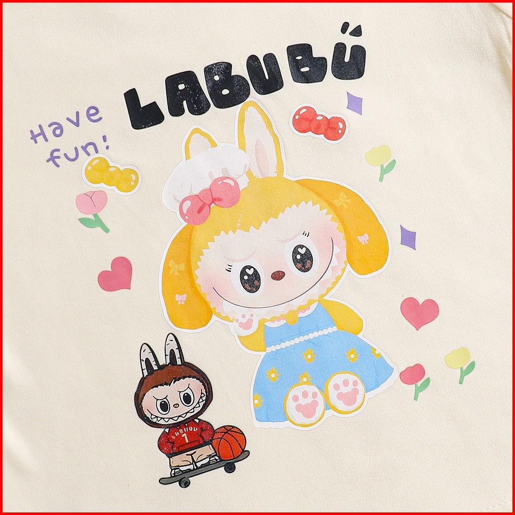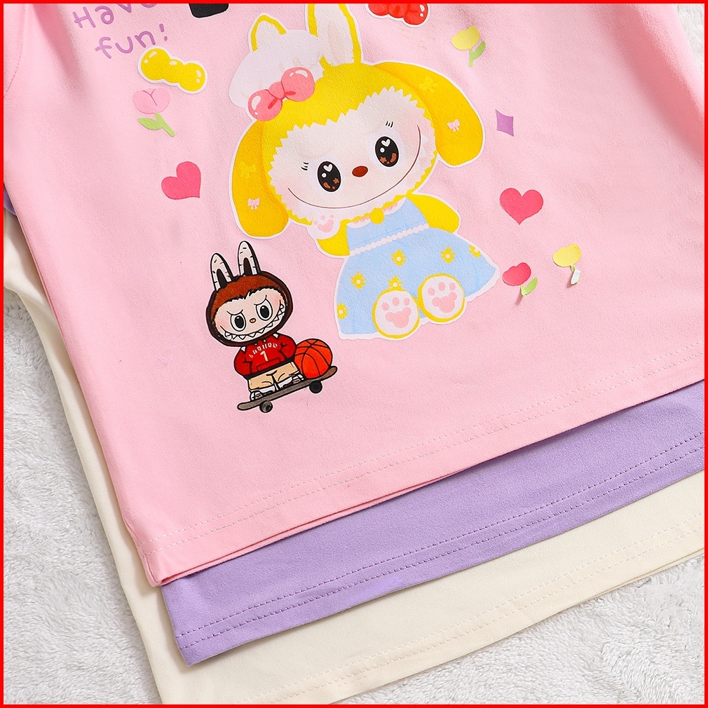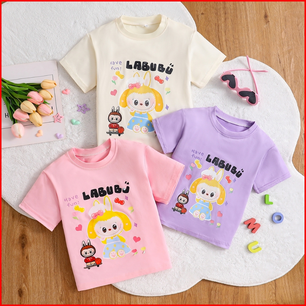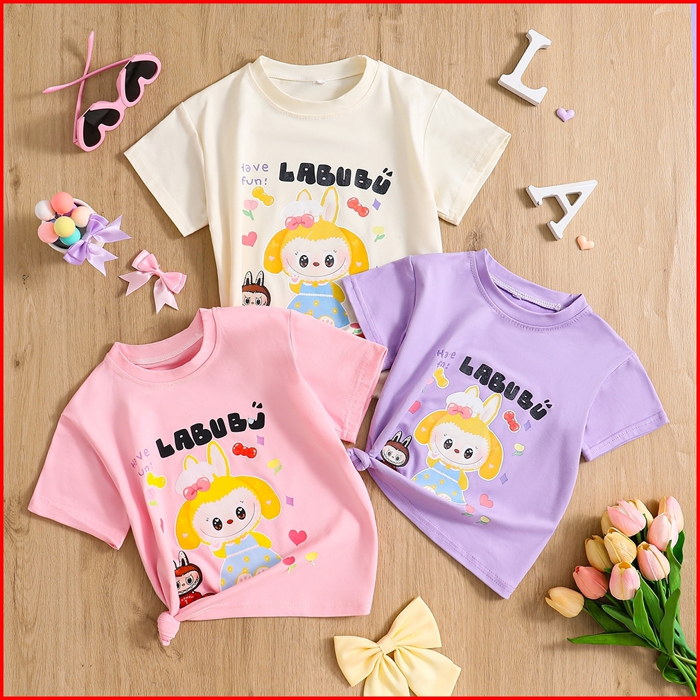 Princess Kesli 1-9 Tahun Baju Labubu Anak Perempuan Kaos Gadis Katun Kasual Longgar Pola Kartun