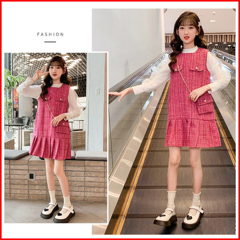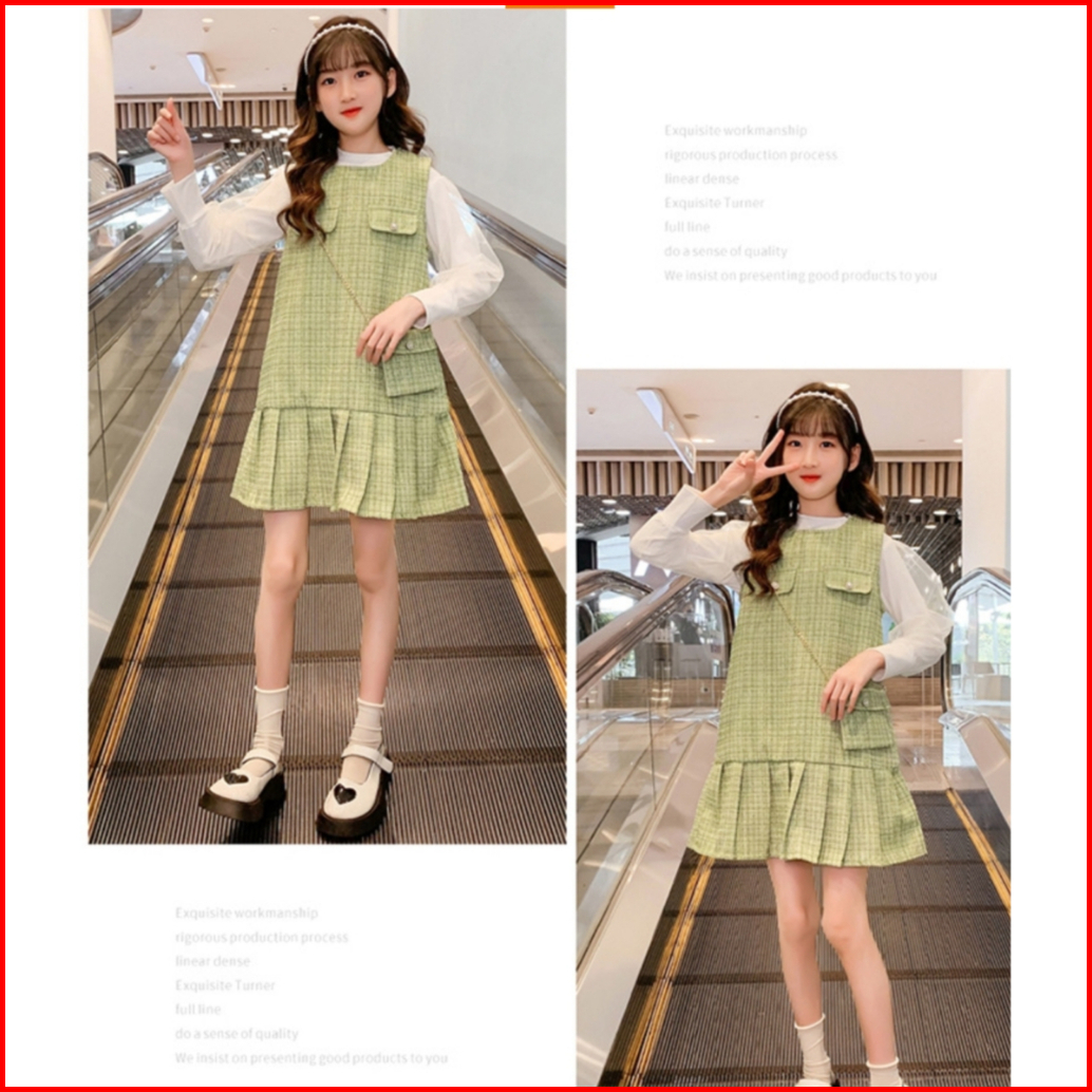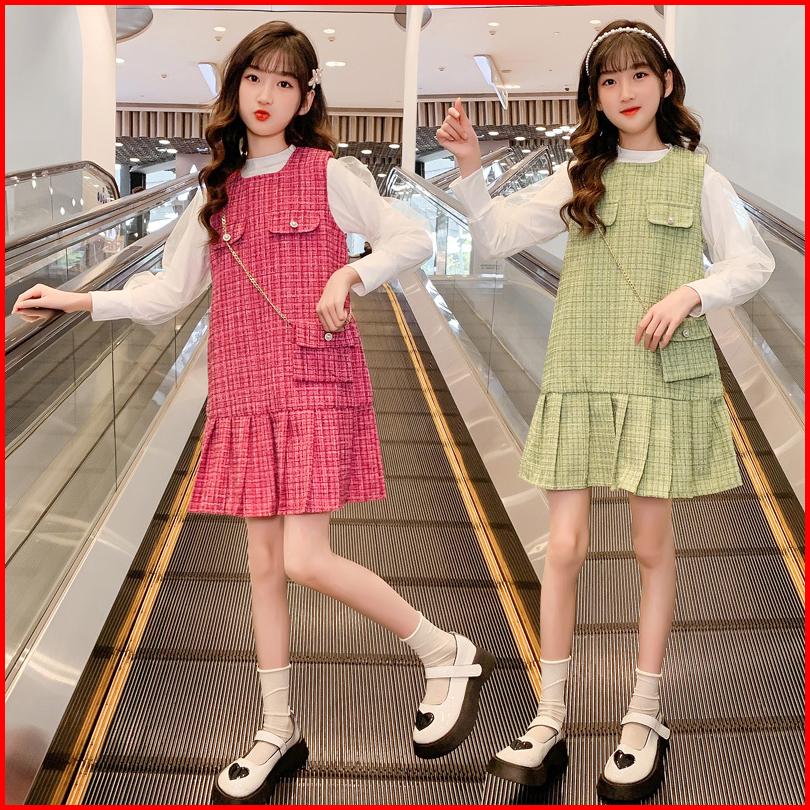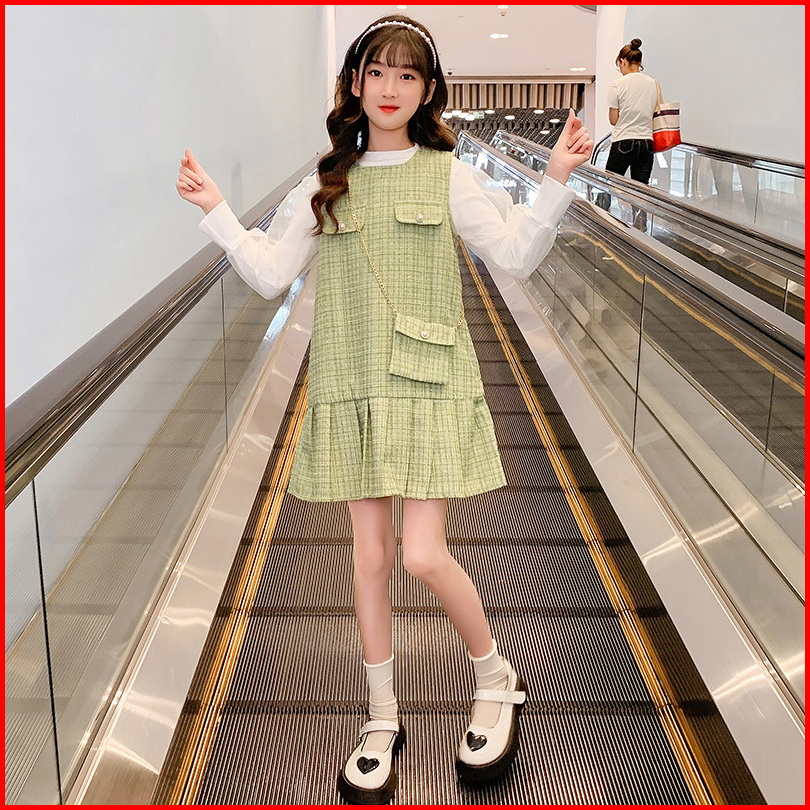 Meandboss Dr14 Free Tas Dress Anak Perempuan Remaja Teenager Besar Tanggung Yuori Fashion Korea 2in1