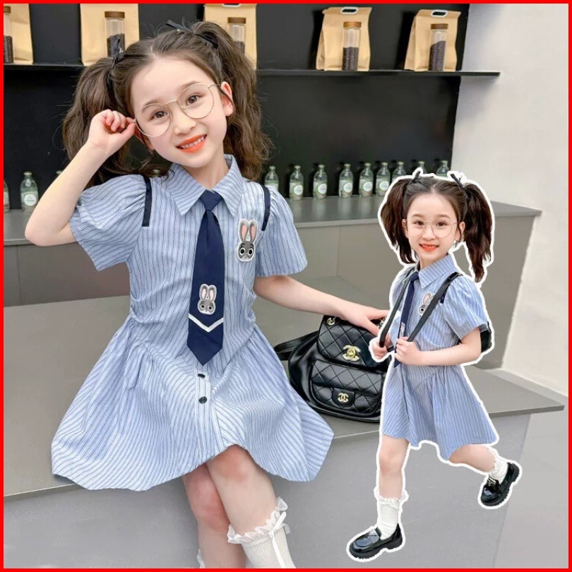 Kingogo Baju Anak Polo Dress Kelinci Embroider Dress Anak Perempuan Biru Dress 2-8tahun Korean Style