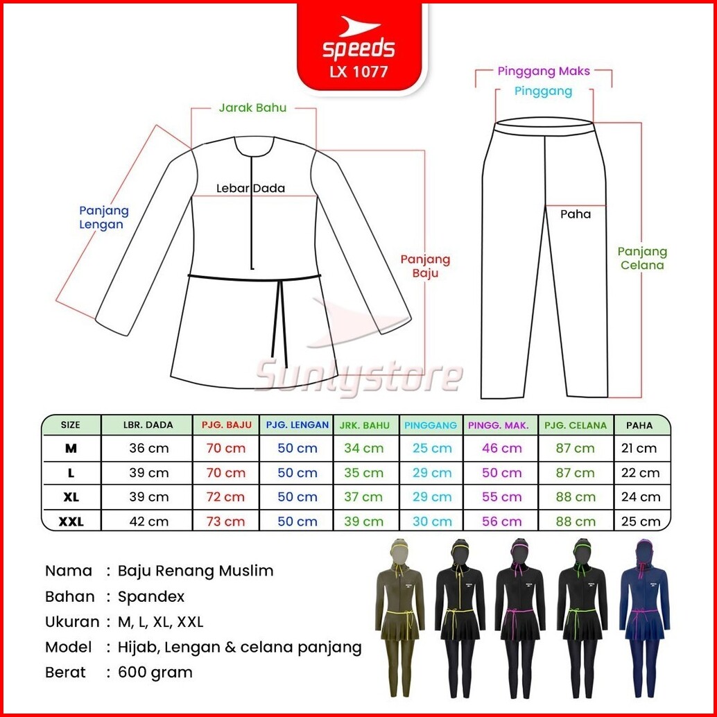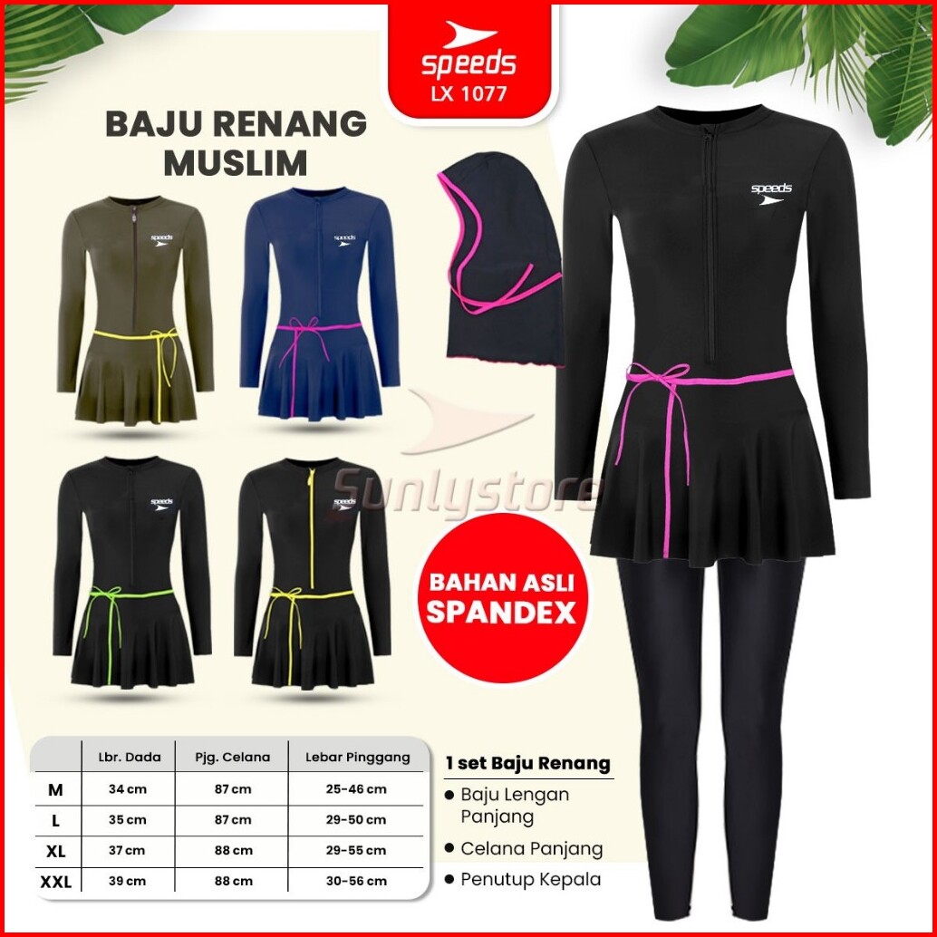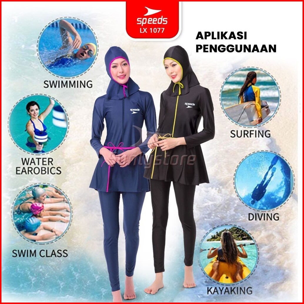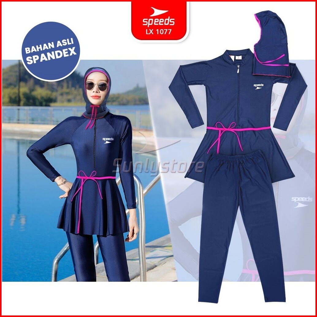 Speeds Baju Renang Swim Suit Spandex Muslim Hijab Swimwear Cewek Wanita Pakaian Renang Remaja Lx 1077