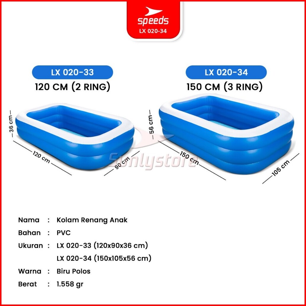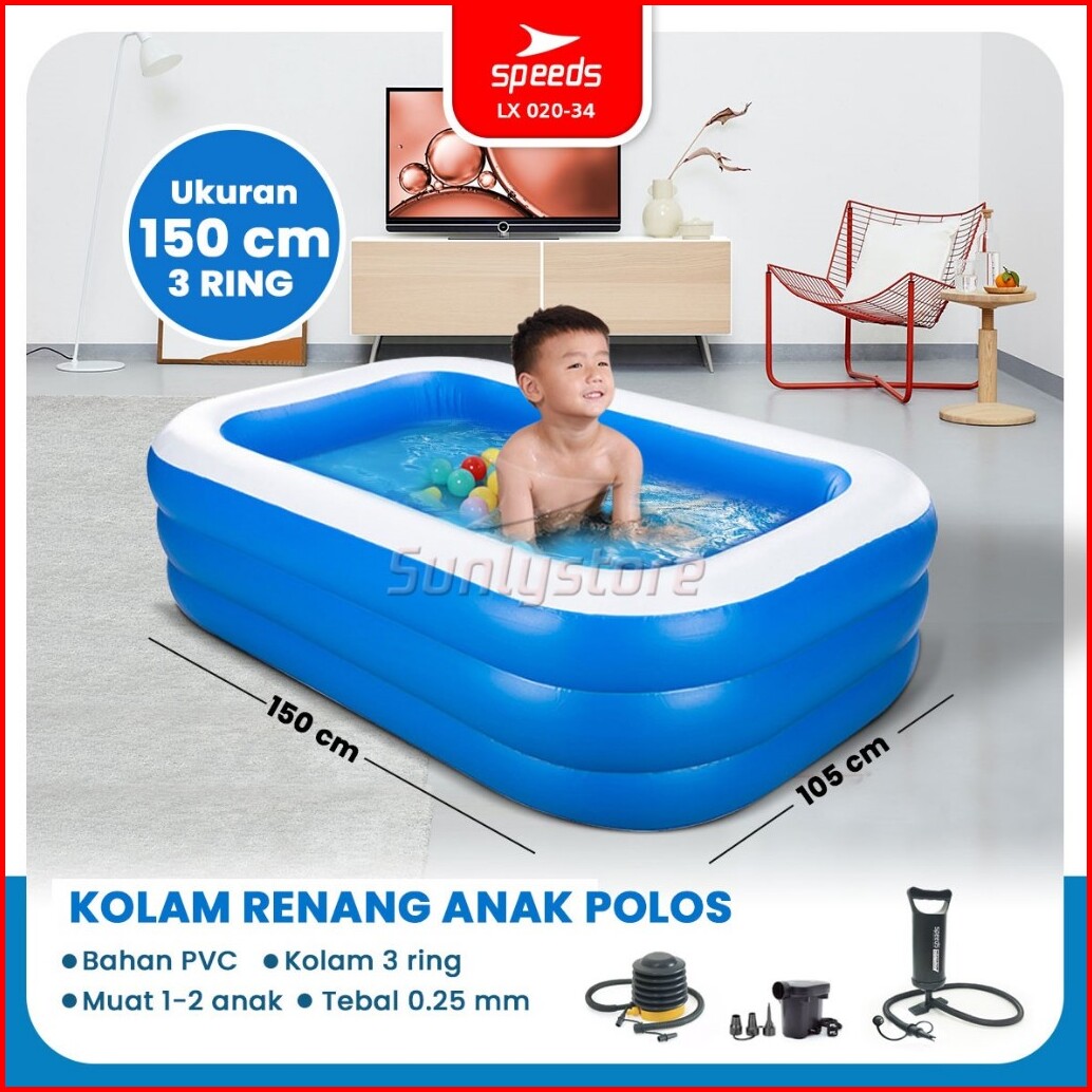 Speeds Kolam Renang 150cm Balita Kolam Renang 3 Ring Layer Biru Polos Swimming Pool For Kids 020-34