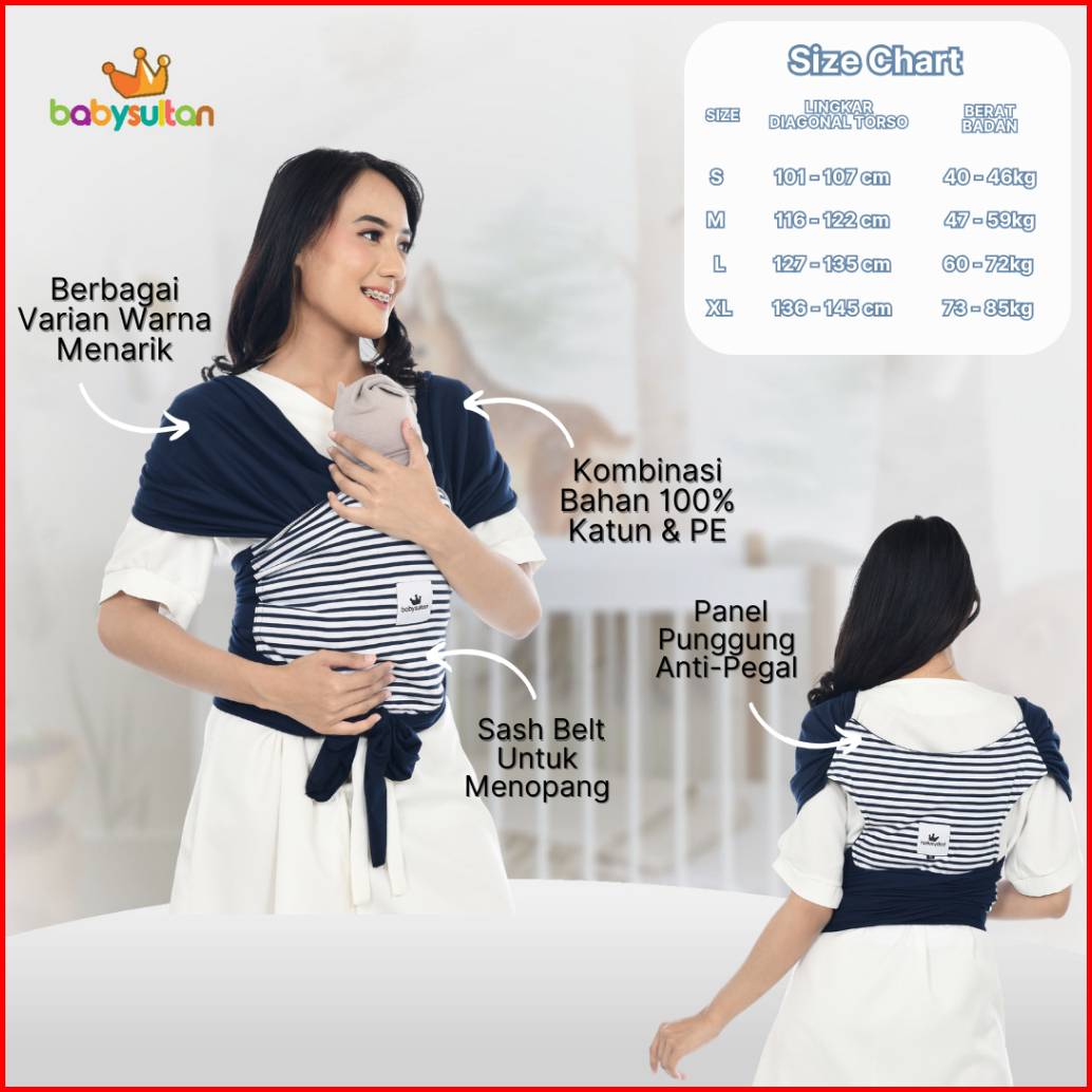 Baby Sultan - Gendongan Bayi 3in1 Fast Baby Wrap - Gendongan Bayi Motif Salur Stripe Dengan Sash Belt
