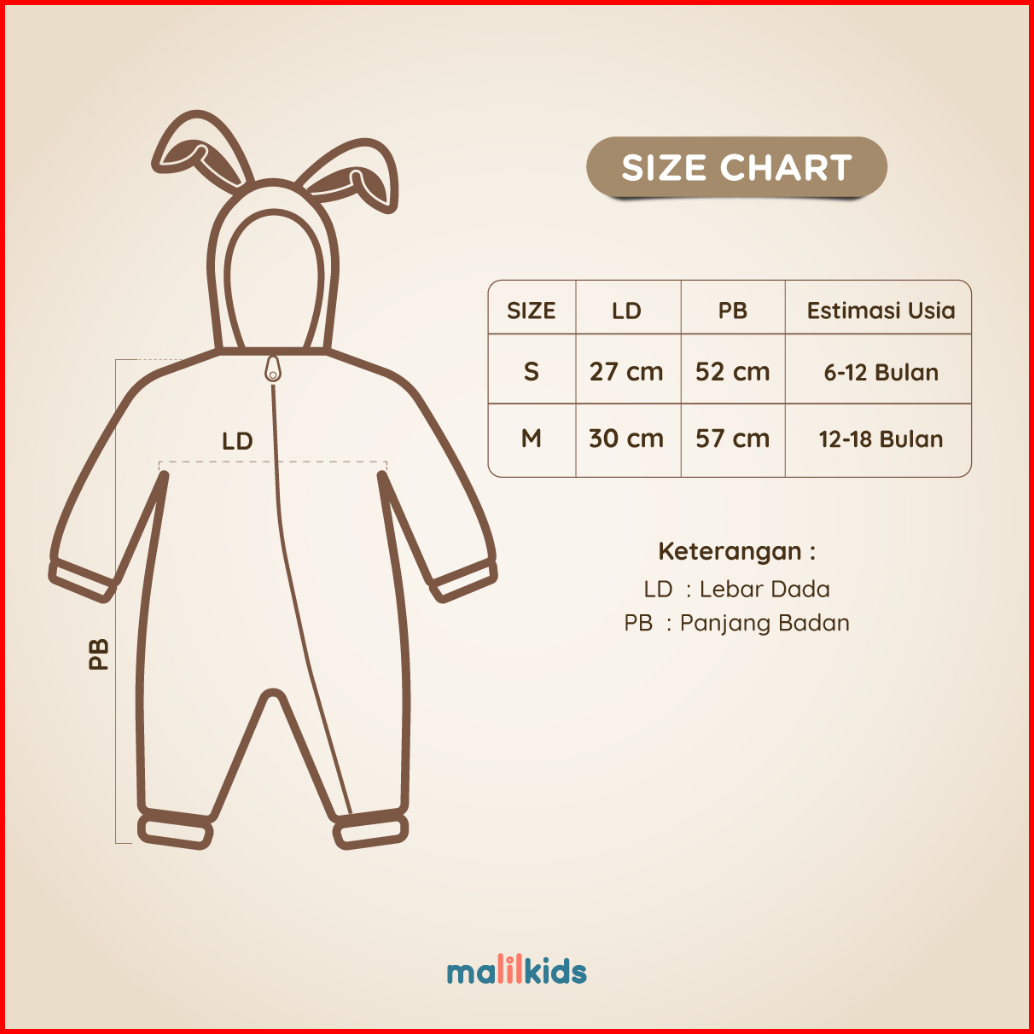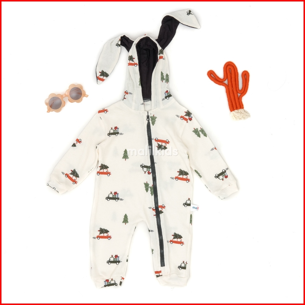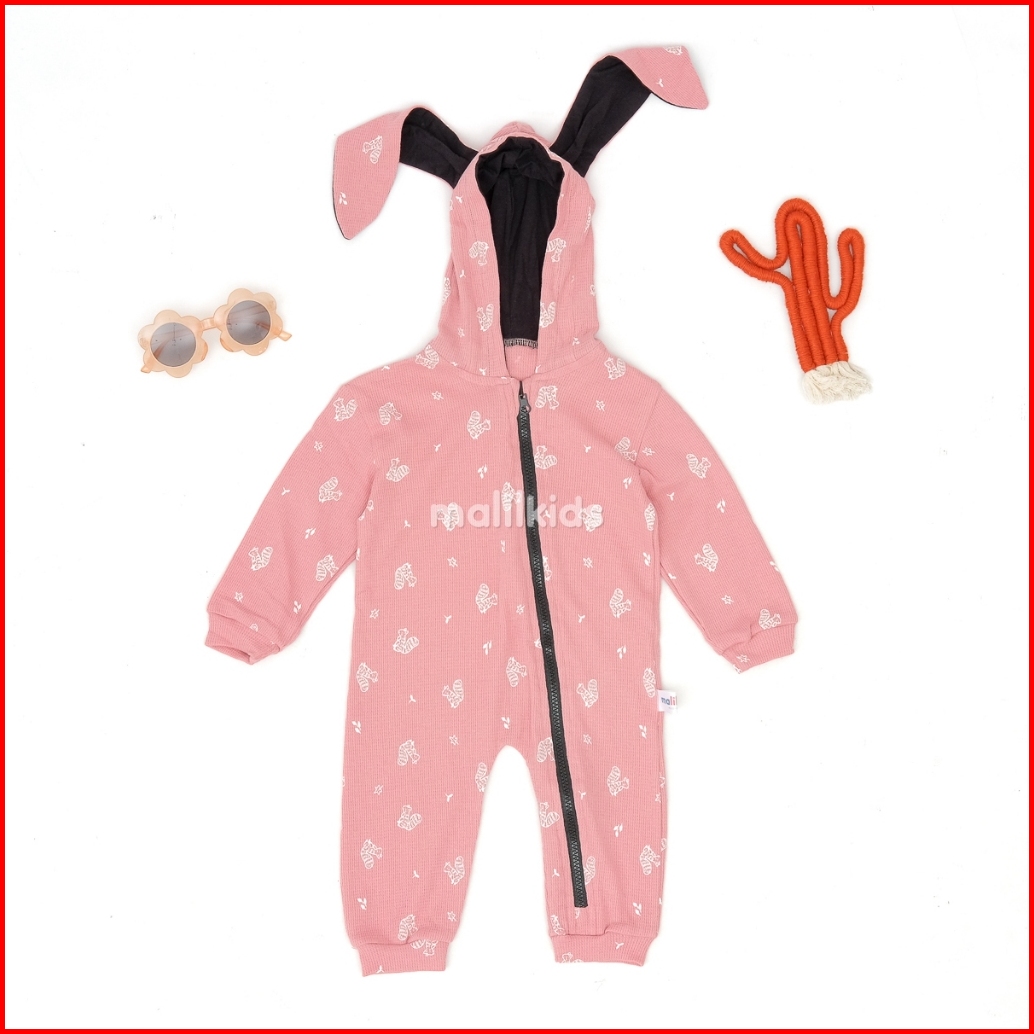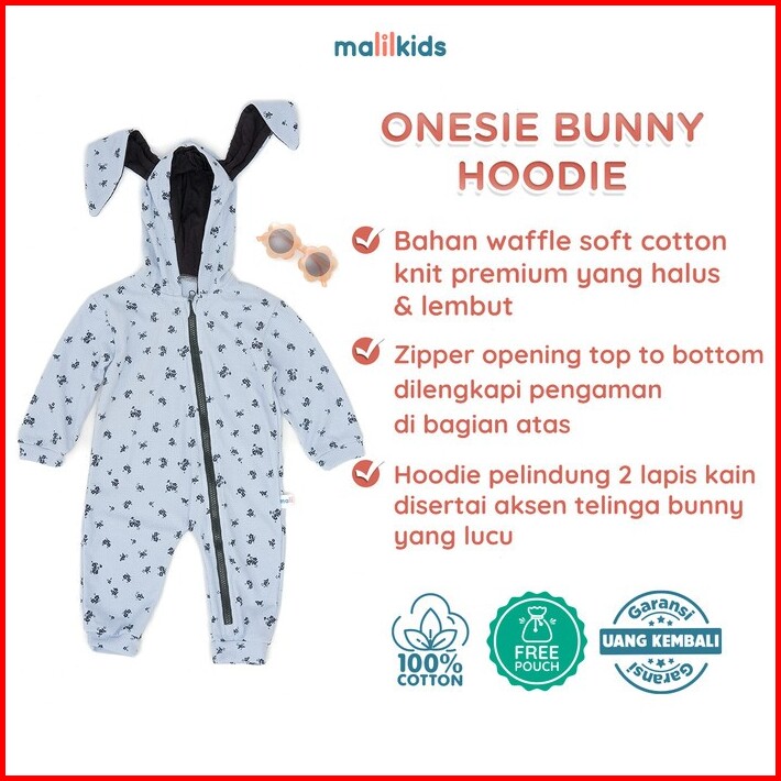 Malilkids Baju Bayi Lengan Panjang Baby Sleepsuit Zipper Onesie Bunny Hoodie