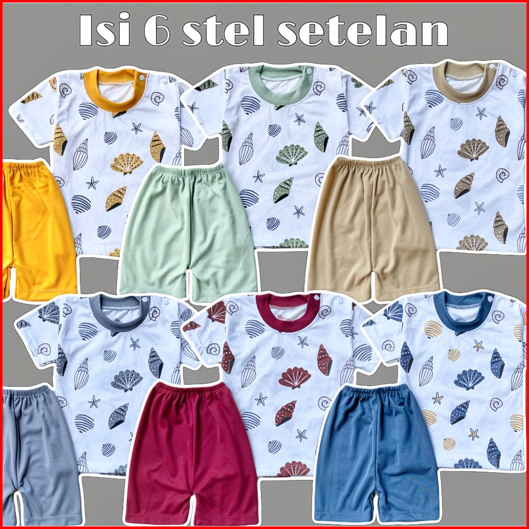 Isi 6 Stel Setelan Bayi Kaos Oblong Bayi Lengan Pendek Celana Pendek Bayi 3-12 Bulan - Ayakan Baby