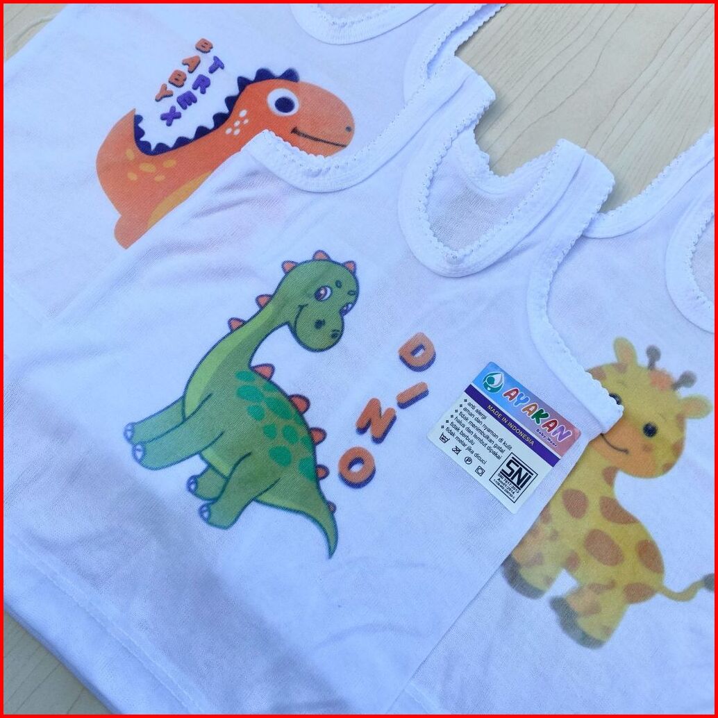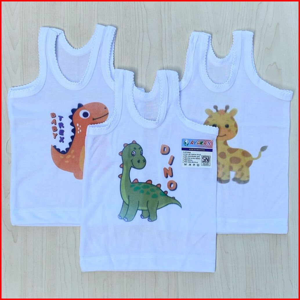 6 12 Pcs Kaos Dalam Singlet Putih Motif Binatang Ayakan Baby