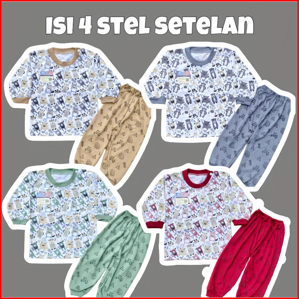 Isi 4 Stel Setelan Bayi Baru Lahir Setelan Kaos Oblong Bayi Lengan Panjang Celana Panjang 3-12 Bulan - Ayakan Baby