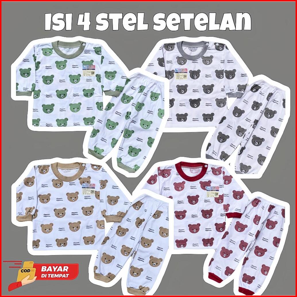 Isi 4 Stel Setelan Bayi Baru Lahir Setelan Kaos Oblong Bayi Lengan Panjang Celana Panjang 3-12 Bulan - Ayakan Baby